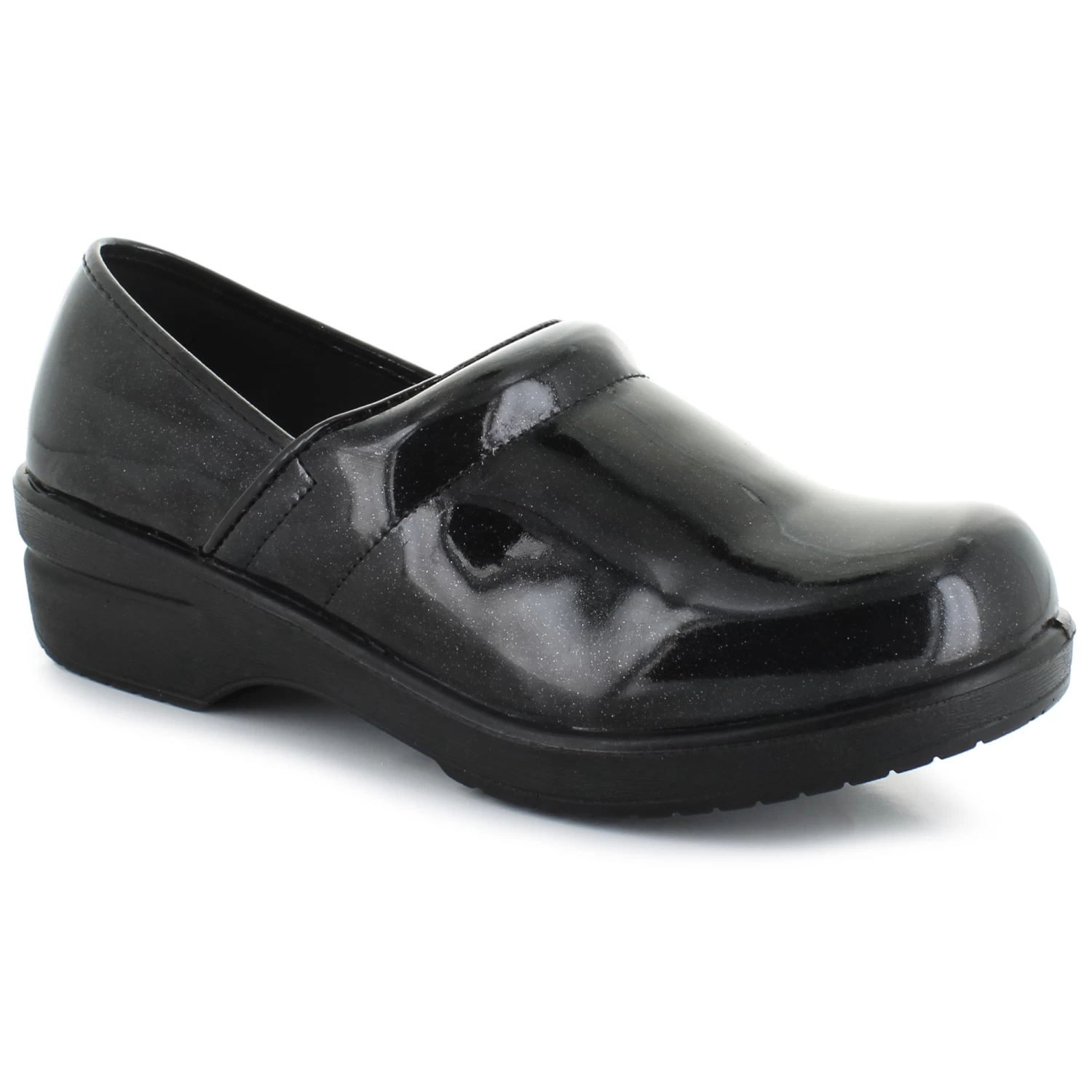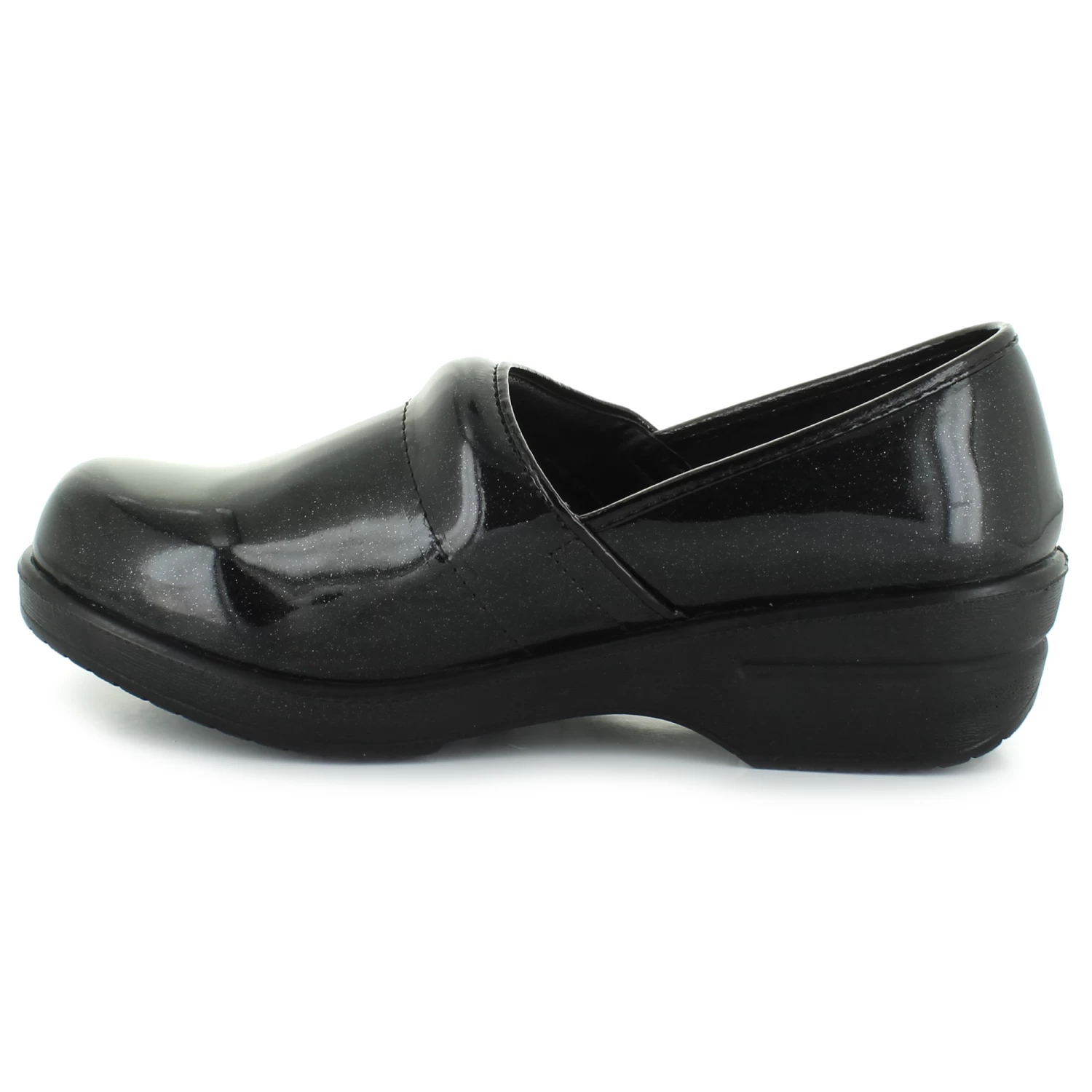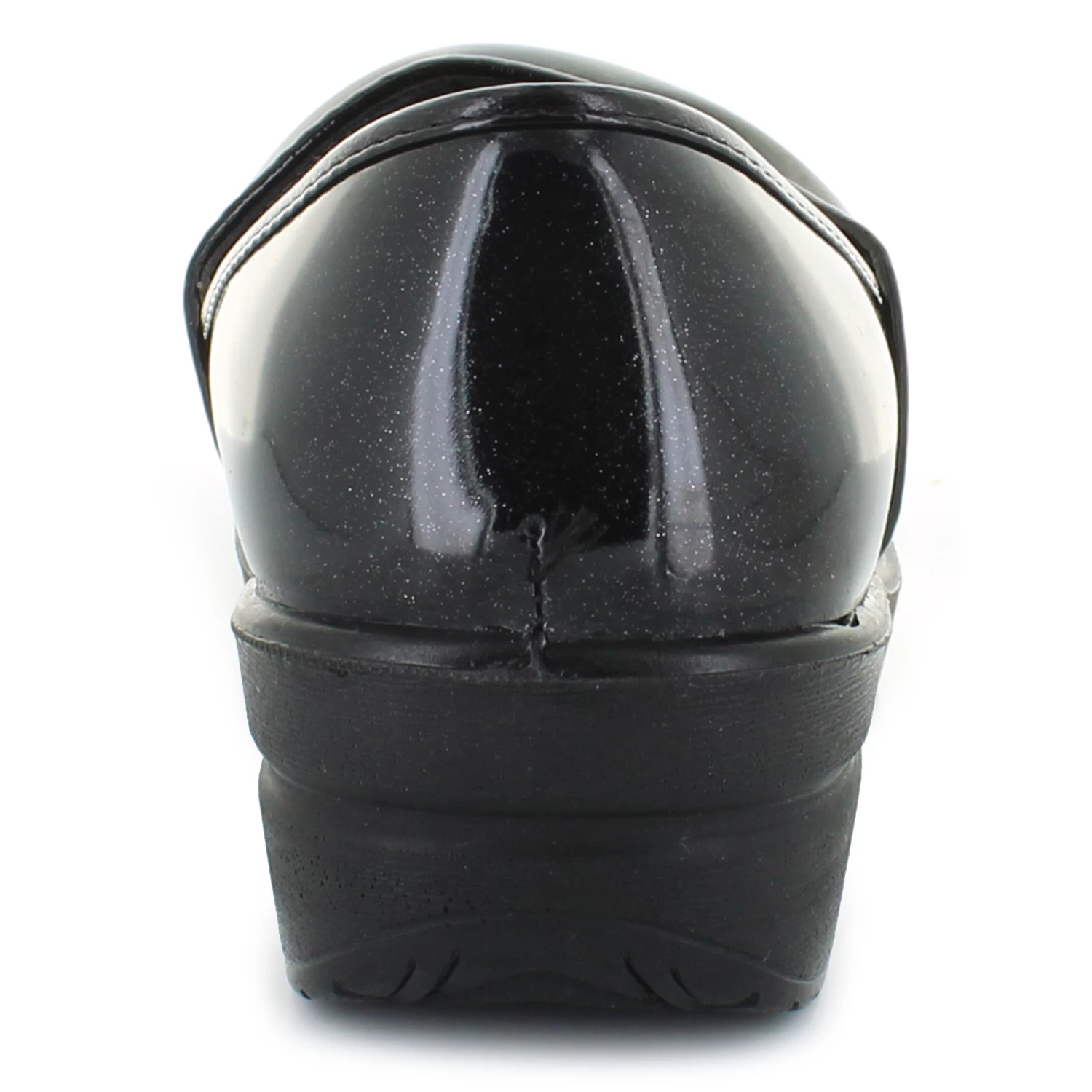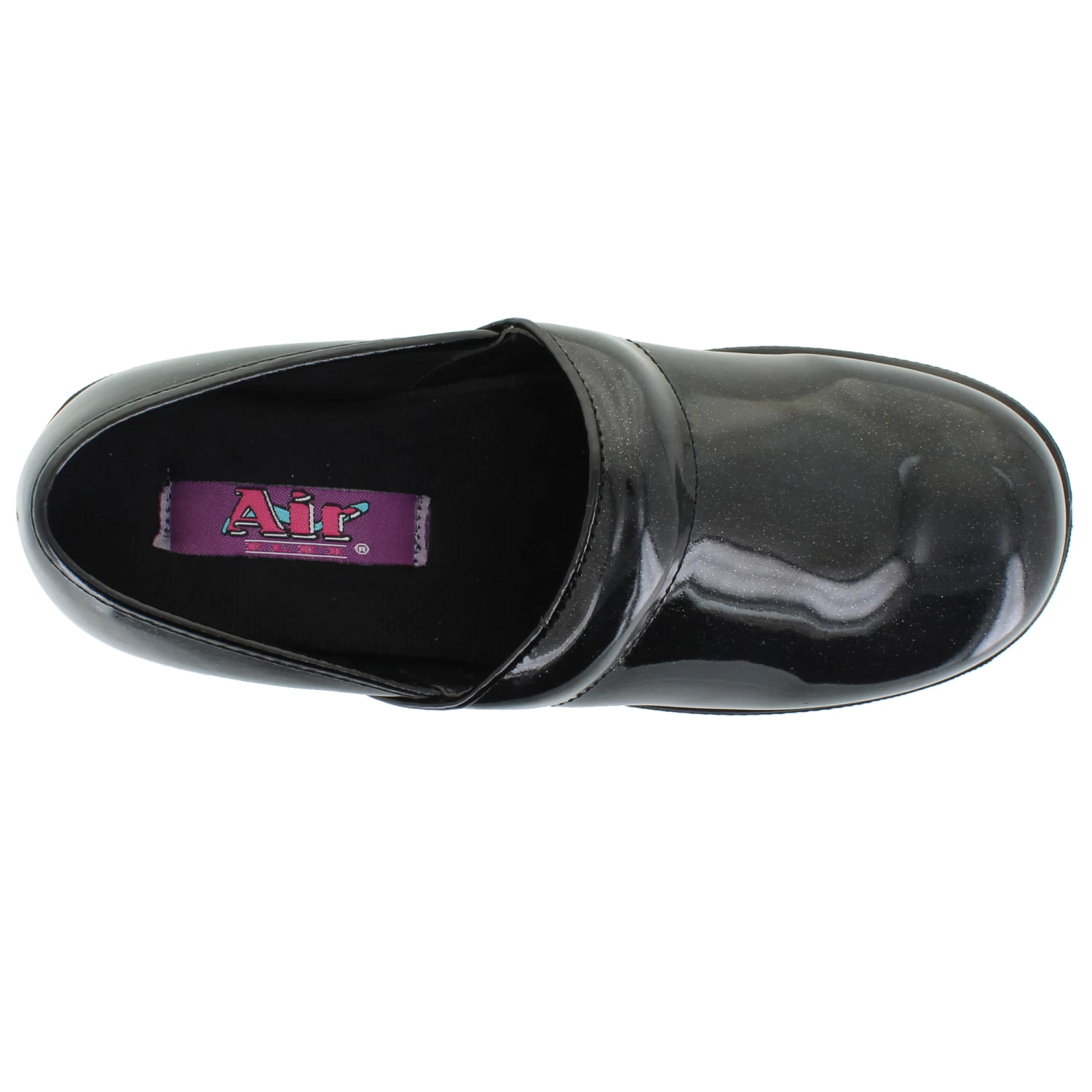 Slip into ultimate comfort with this work shoe by Air Flex. The Air Flex Jamilla Spark features a slip-on style with with a comfort insole while you on your feet all day. The glitter detail will provide additional style with each and every step.