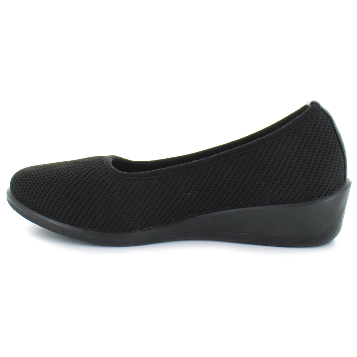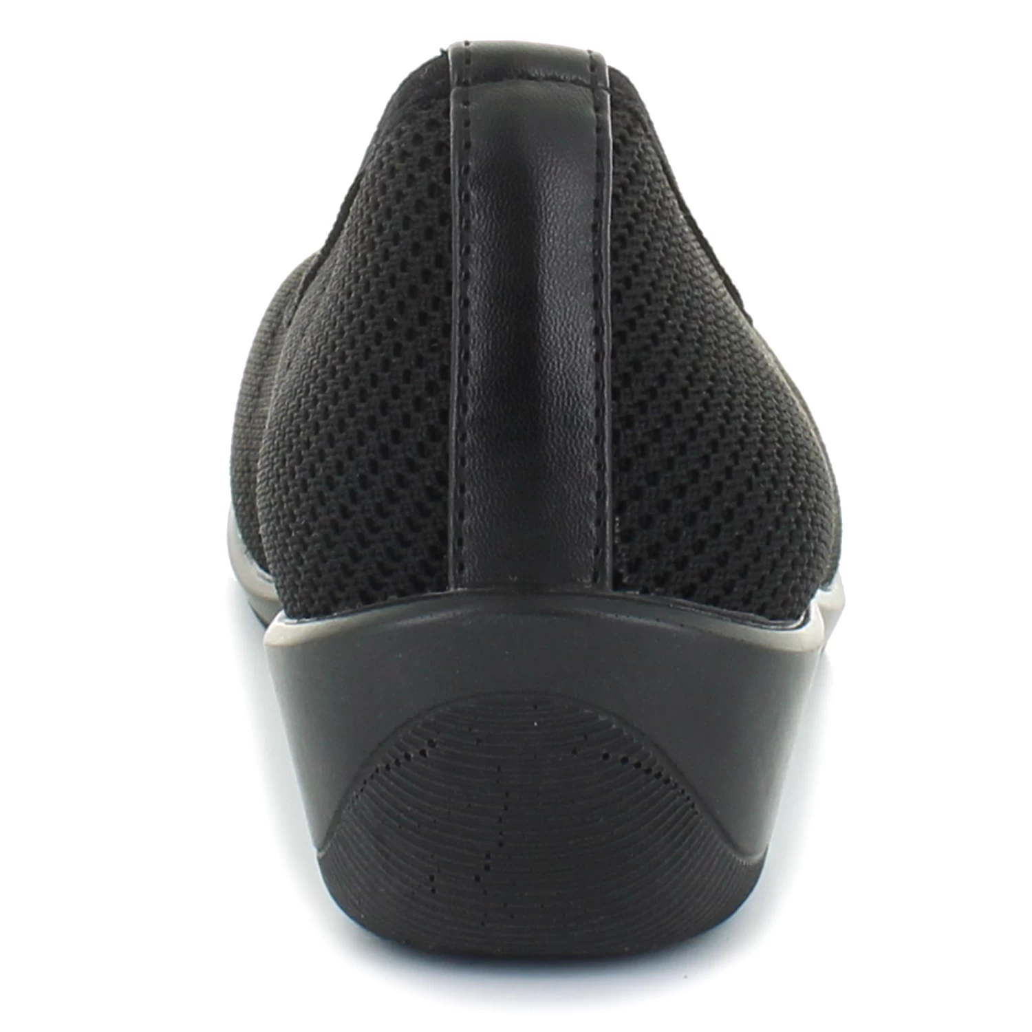 Lightweight and comfy slip-on by Air Flex. This style features a stretch fabric upper with a comfort cushioned insole. The wedge heel will provide just the right height.