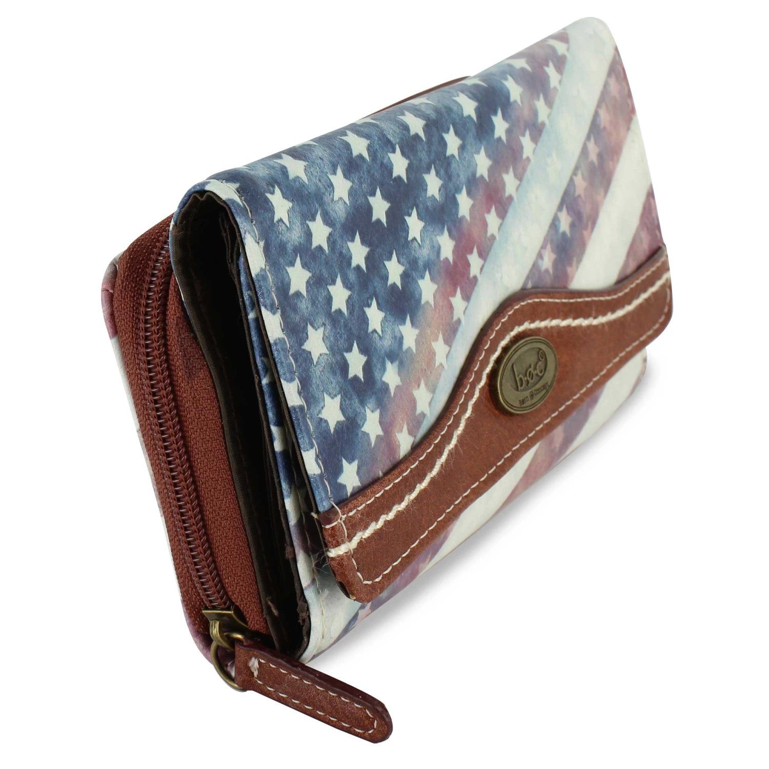 Show your patriotic pride when you choose this star spangled b.o.c. wallet. It has a zippered compartment that is great for keeping your smaller items secure. The multiple slip pockets are ideal for organizing your money, identification and credit cards. Shop SHOE DEPT. ENCORE