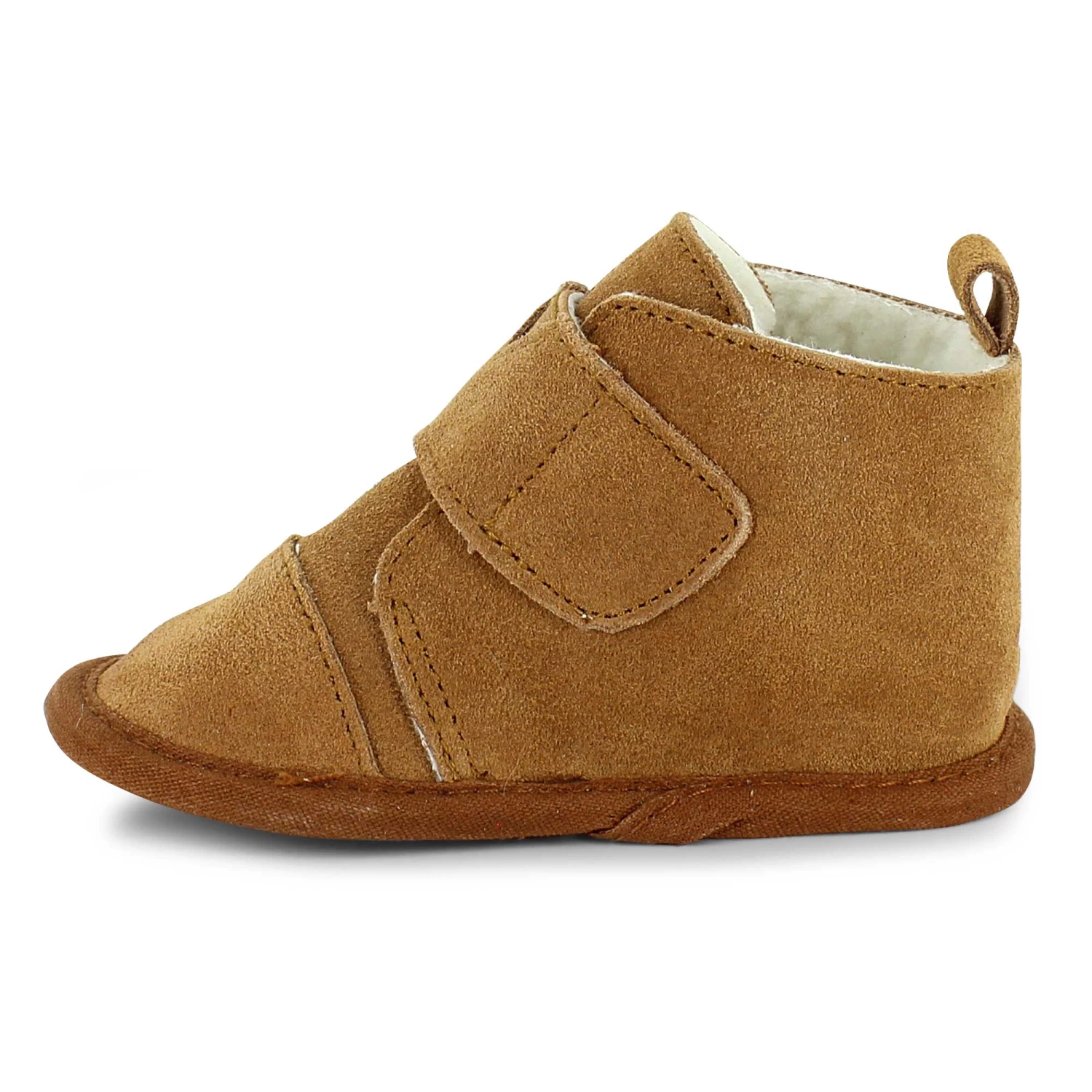 Set them up in cozy comfort with Bearpaw baby boots. These shoes feature an easy to use strap closure so you don’t have to fight to get them dressed. The soft faux-fleece lining and helps keep them warm while the leather suede upper brings style to fall outings.