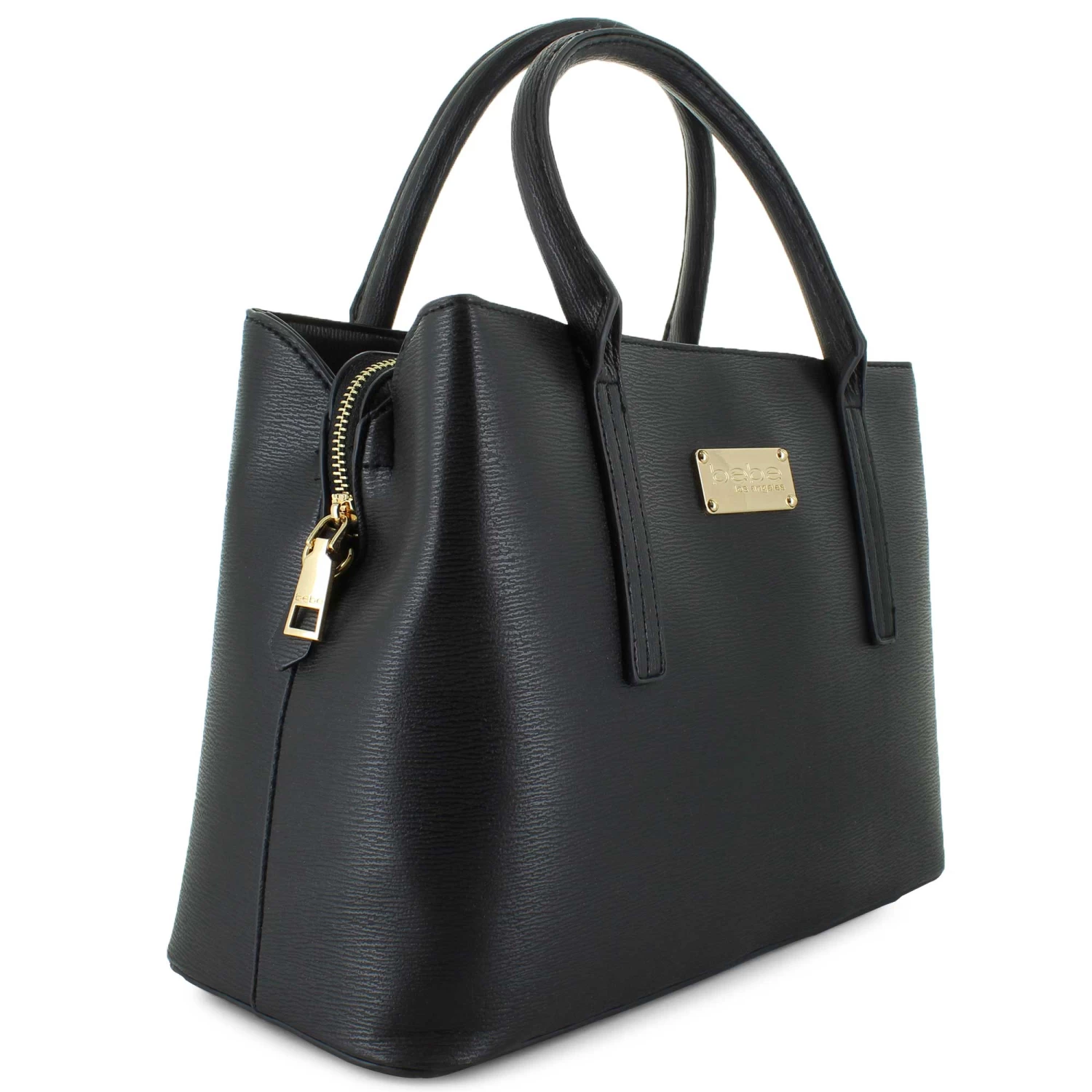 The classic stylings of this bag along with the substantial amount of storage makes it the perfect choice for your everyday needs. The textured faux-leather exterior adds a great fashionable flair to it. This satchel can be carried by the double handles or worn as a shoulder bag when you clip on the bonus adjustable shoulder strap that comes with it. Check out the color selection at SHOE SHOW and choose the one that best suits your needs.