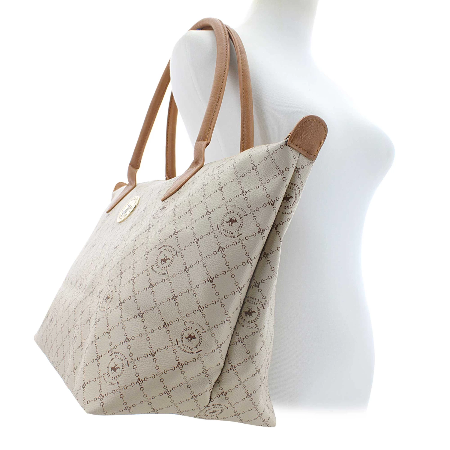 This stylish Beverly Hills Polo Club tote is spacious enough for all your essentials and personal effects throughout the day. It’s signature logo-print design adds a classy touch to the exterior. There is so much room that you can throw in a few extra things and go straight from work to a night out with your friends.