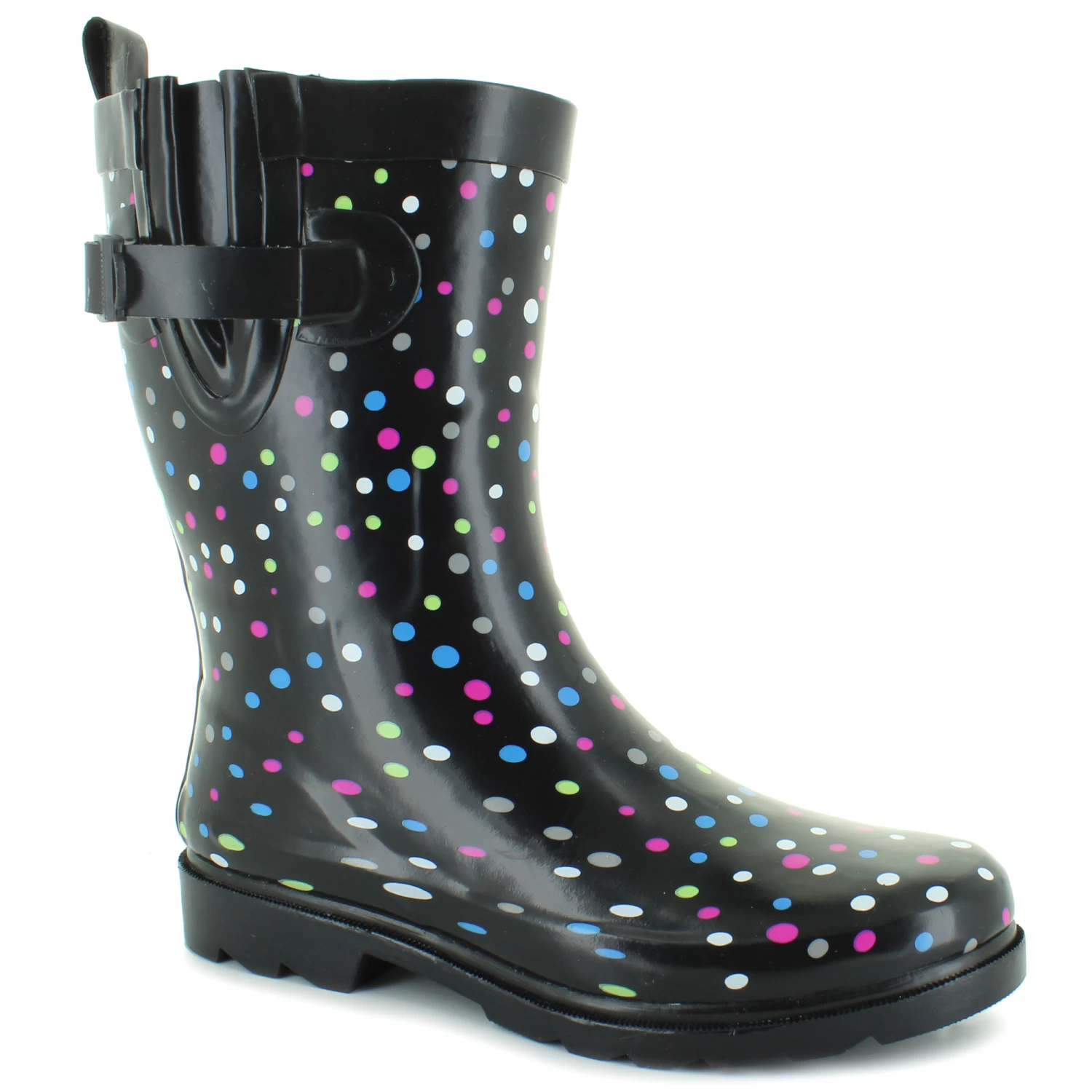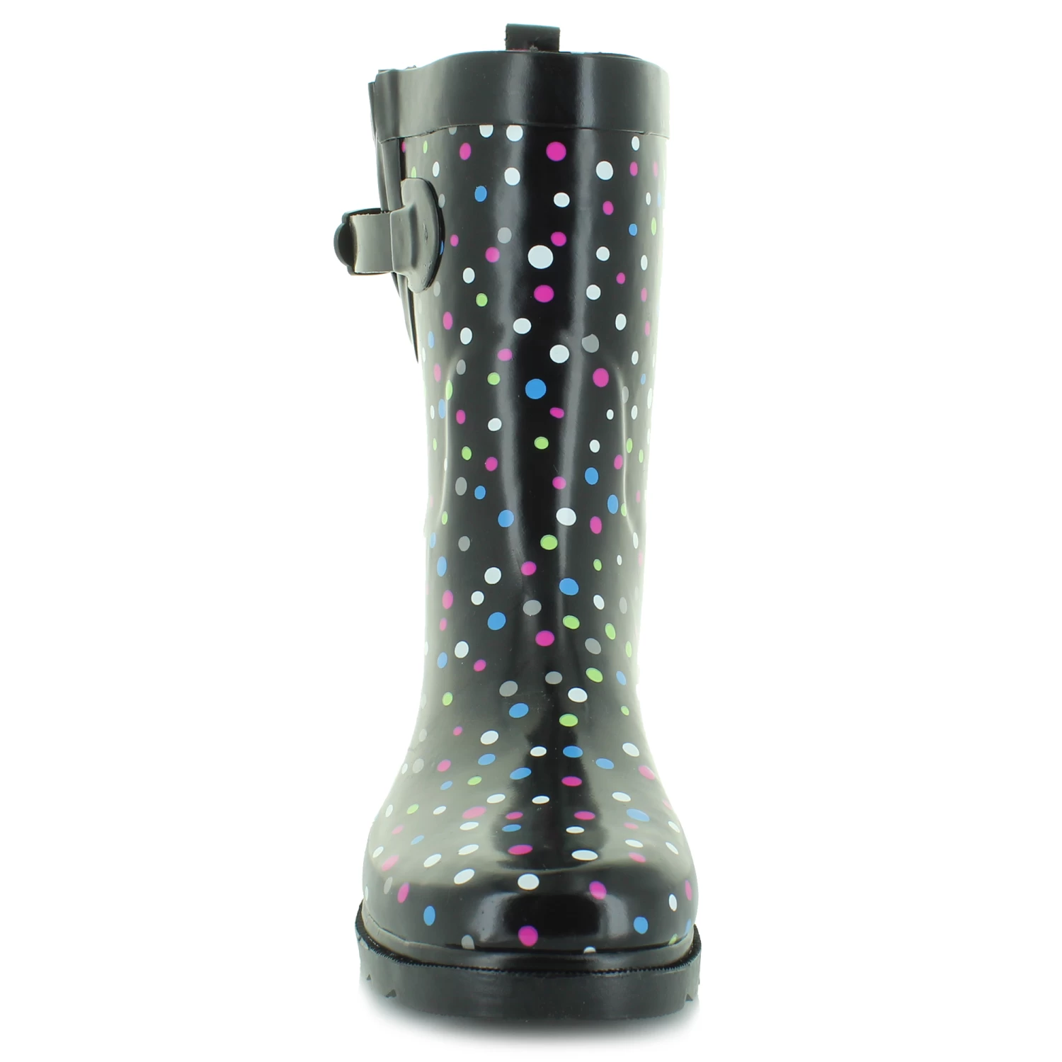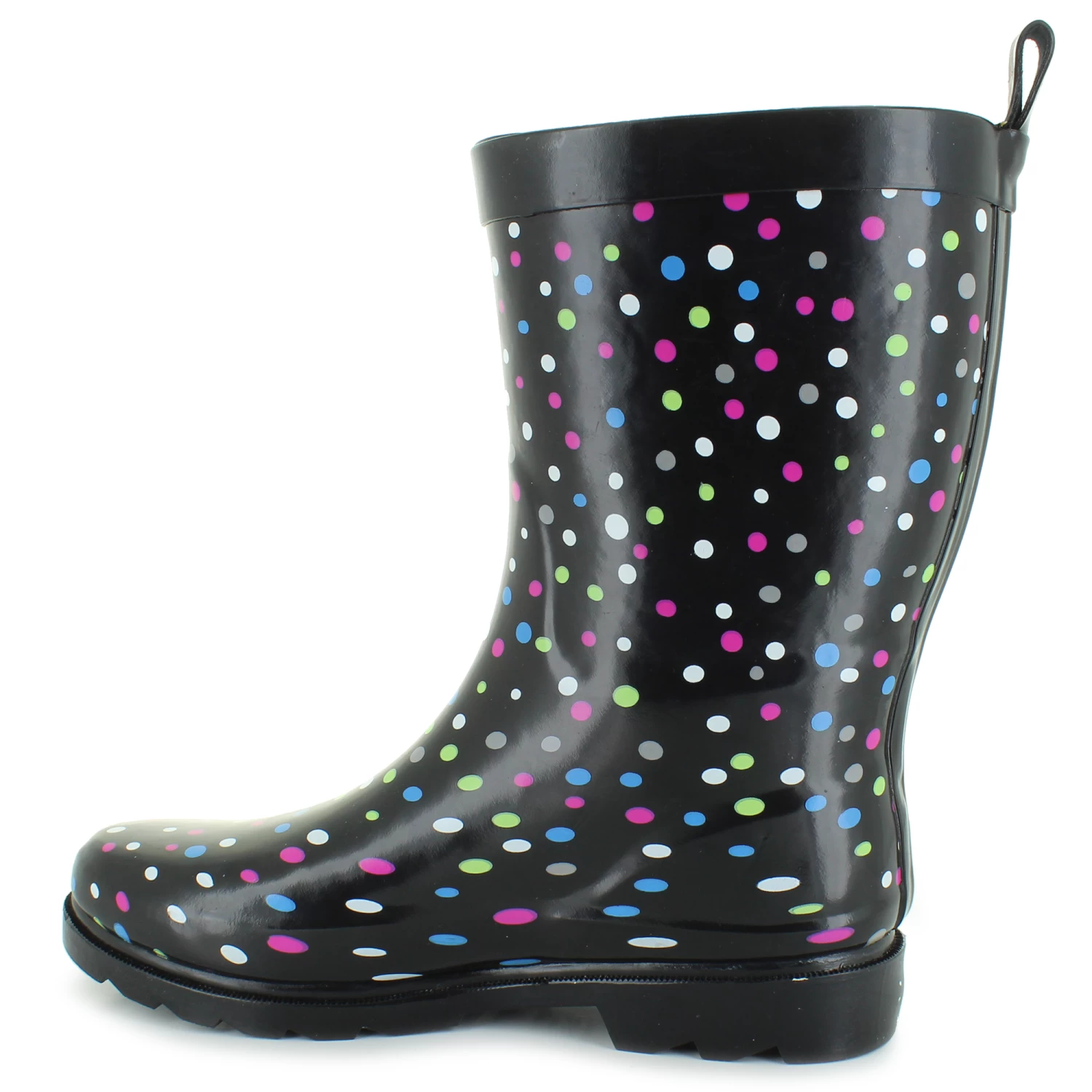 Stay warm and cozy in rainy weather with the Capelli RBT-5212. This rain boot features a slip-on wear with polka-dot pattern for styling. The side buckle closure will provide a snug fit.