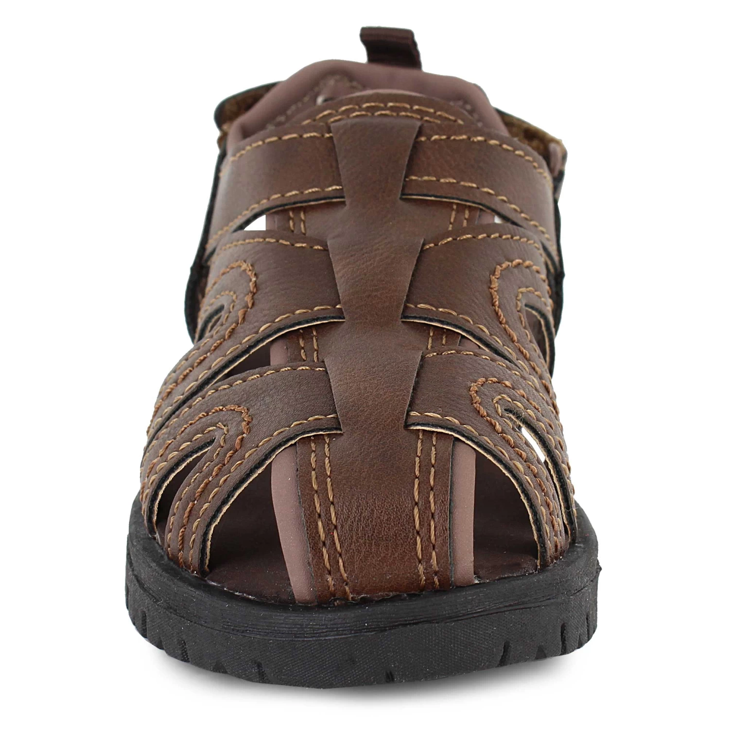 Help them enjoy some fun in the sun with these comfortable playtime fisherman sandals. The cushy footbed is great for days out and about, with the open construction allowing plenty of airflow to keep feet cool. The convenient strap closure around the heel makes these a quick way to get ready to go, whether it is a trip to the park, a visit to a friend, or off on a summer adventure.