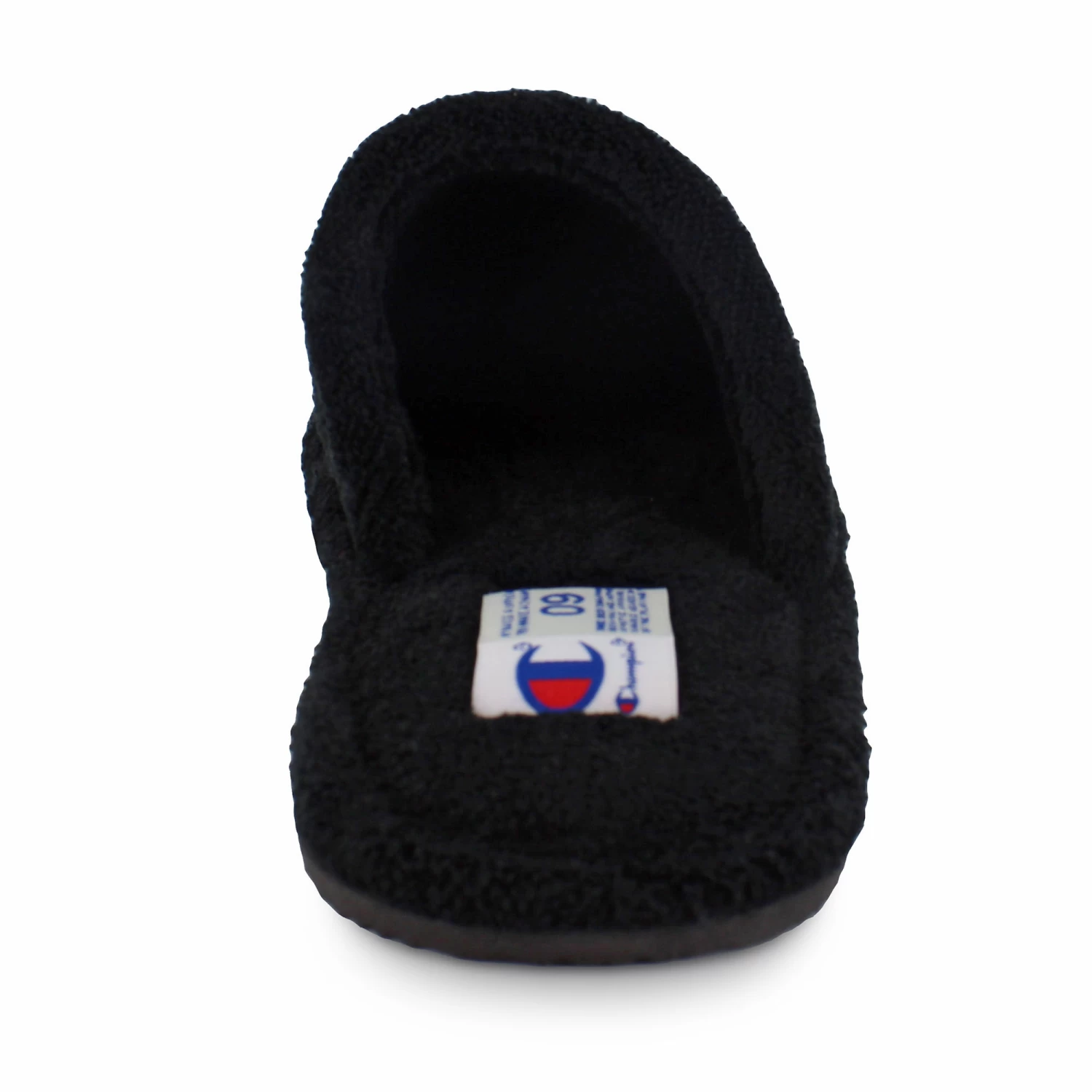 Slip into Champion The Sleepover slippers and kick back in style and comfort. Crafted from soft terry fabric and featuring the Champion embroidered C for added design, these slippers will keep you warm and cozy on those lazy days. A lightly cushioned footbed and textured synthetic outsole protect your foot while providing comfort while the simple slip-on design allows for an easy on and off.