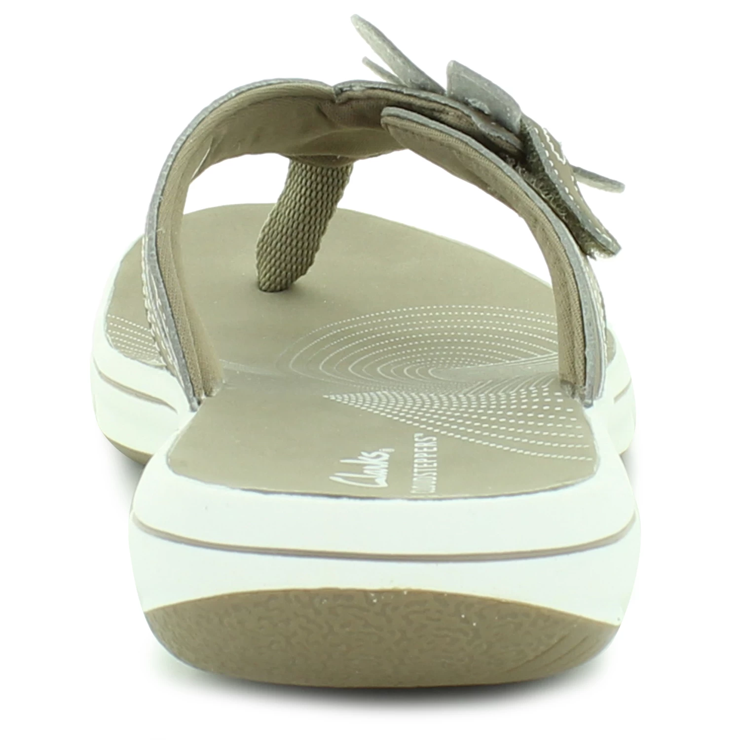 Pack light, step lighter. The Cloudsteppers Brinkley Flora flip-flop features a slip-on wear with a thong construction. A cushioned EVA midsole and footbed support and protect the foot from shells and beach pebbles without adding any extra weight.