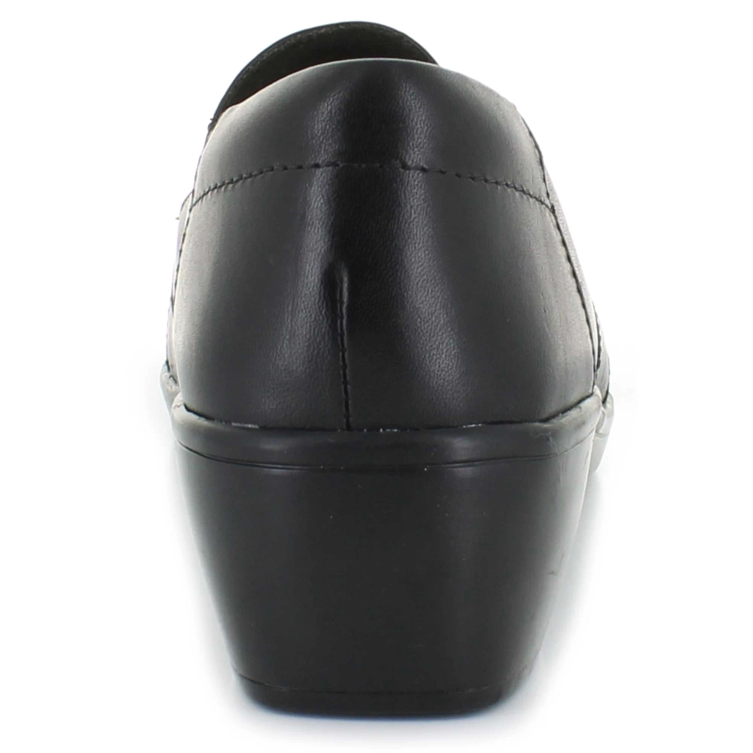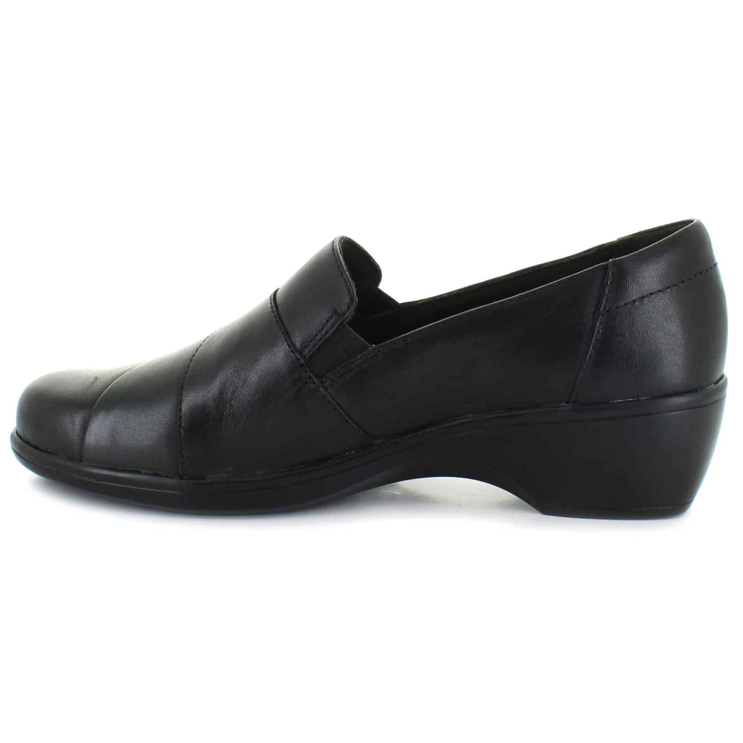 A clean, classic design with walk-all-day comfort. Made from extra-soft black leather with stretch gores, fabric/leather linings, OrthoLite footbed, TPR outsole, and sculpted low heel, this women’s shoe from the Clarks Collection defines easy wearability. Slip it day or night on to add a cute finishing touch to jeans, skirts, or pants.