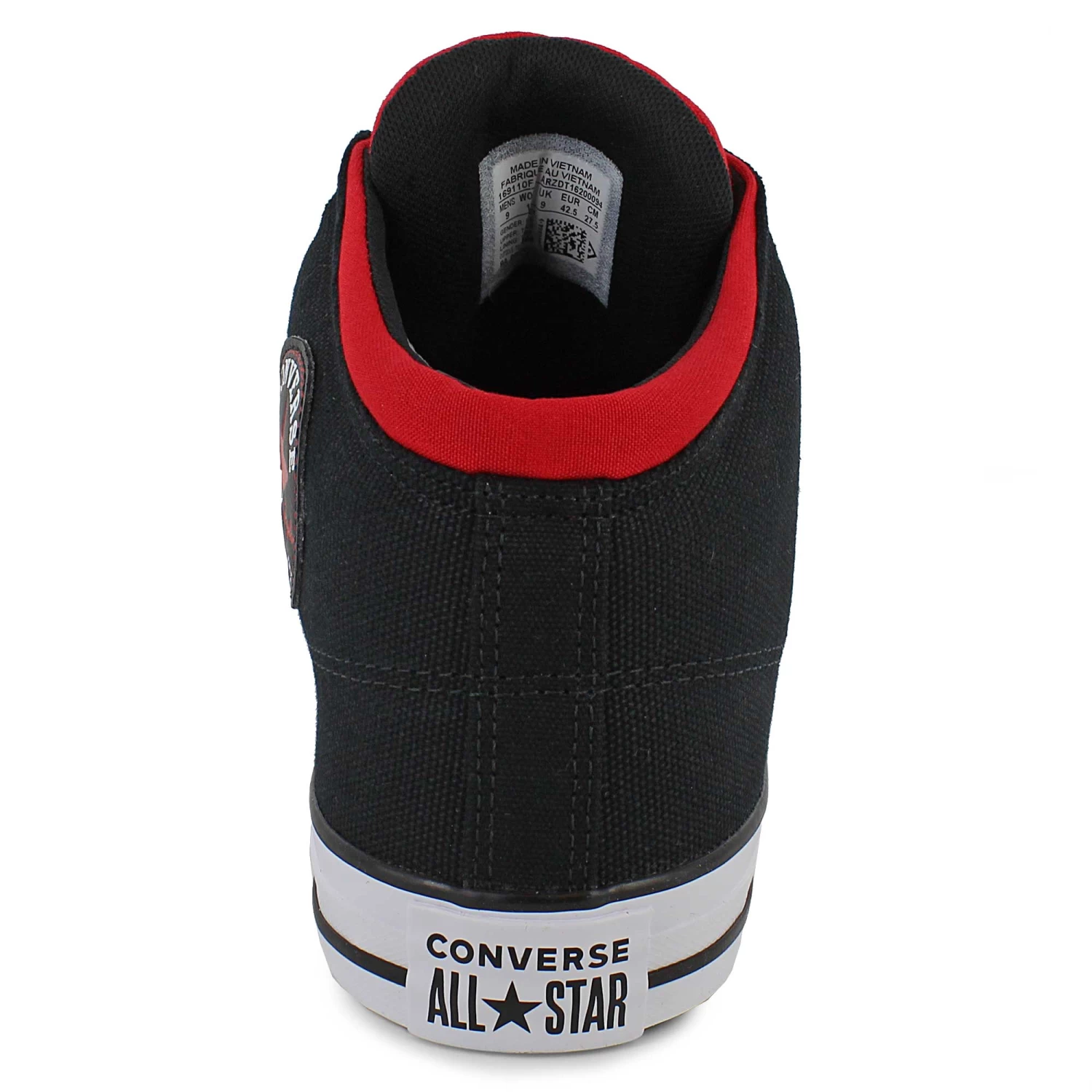 Hit the streets with the classic Converse Chuck Taylor All Star High Street sneaker. This high top features a secure lace-up design, padded tongue, and collar, as well as an upper crafted combining canvas and fabric. The iconic Converse toecap combined with the All Star branding on the side, this shoe pairs well with most casual and athletic attire.