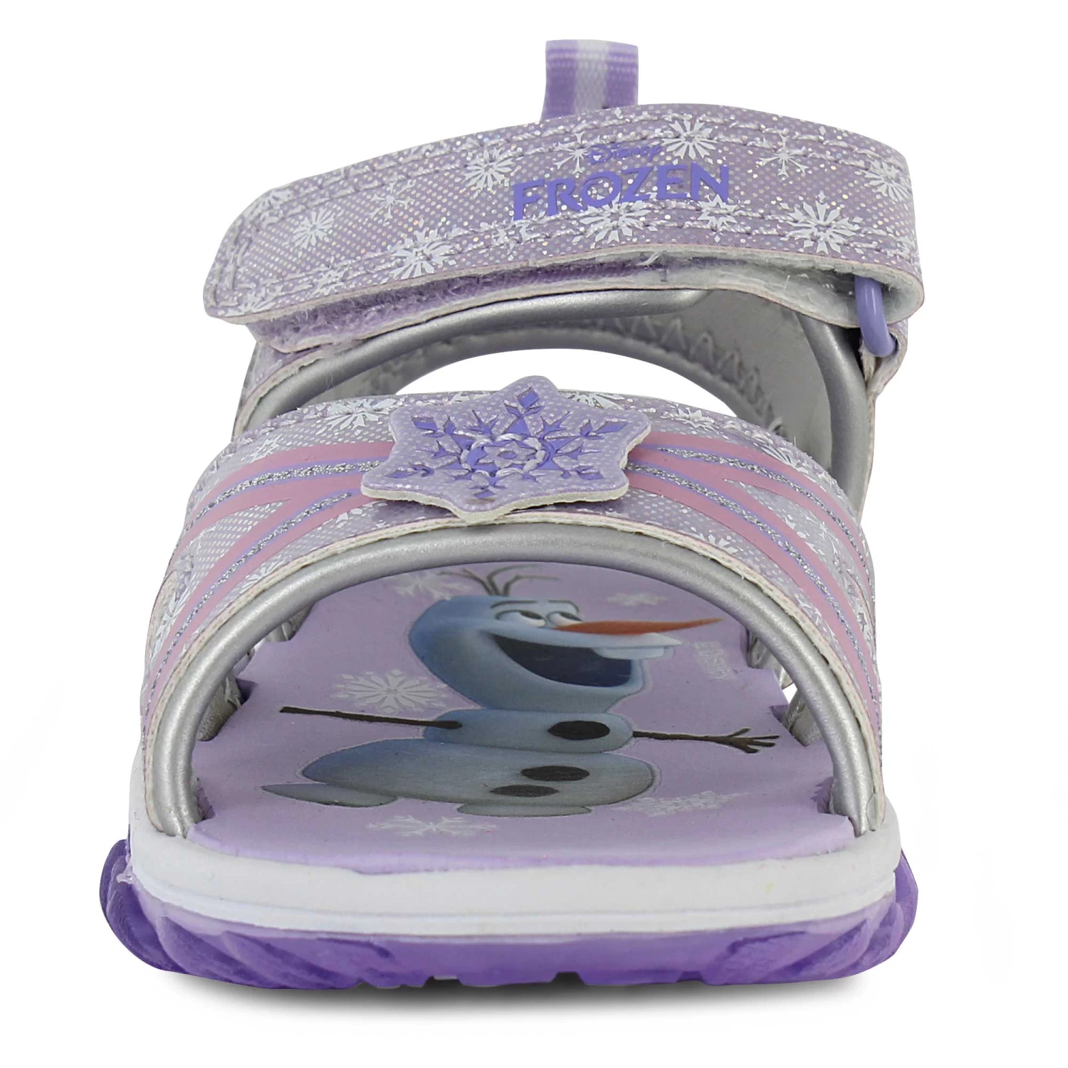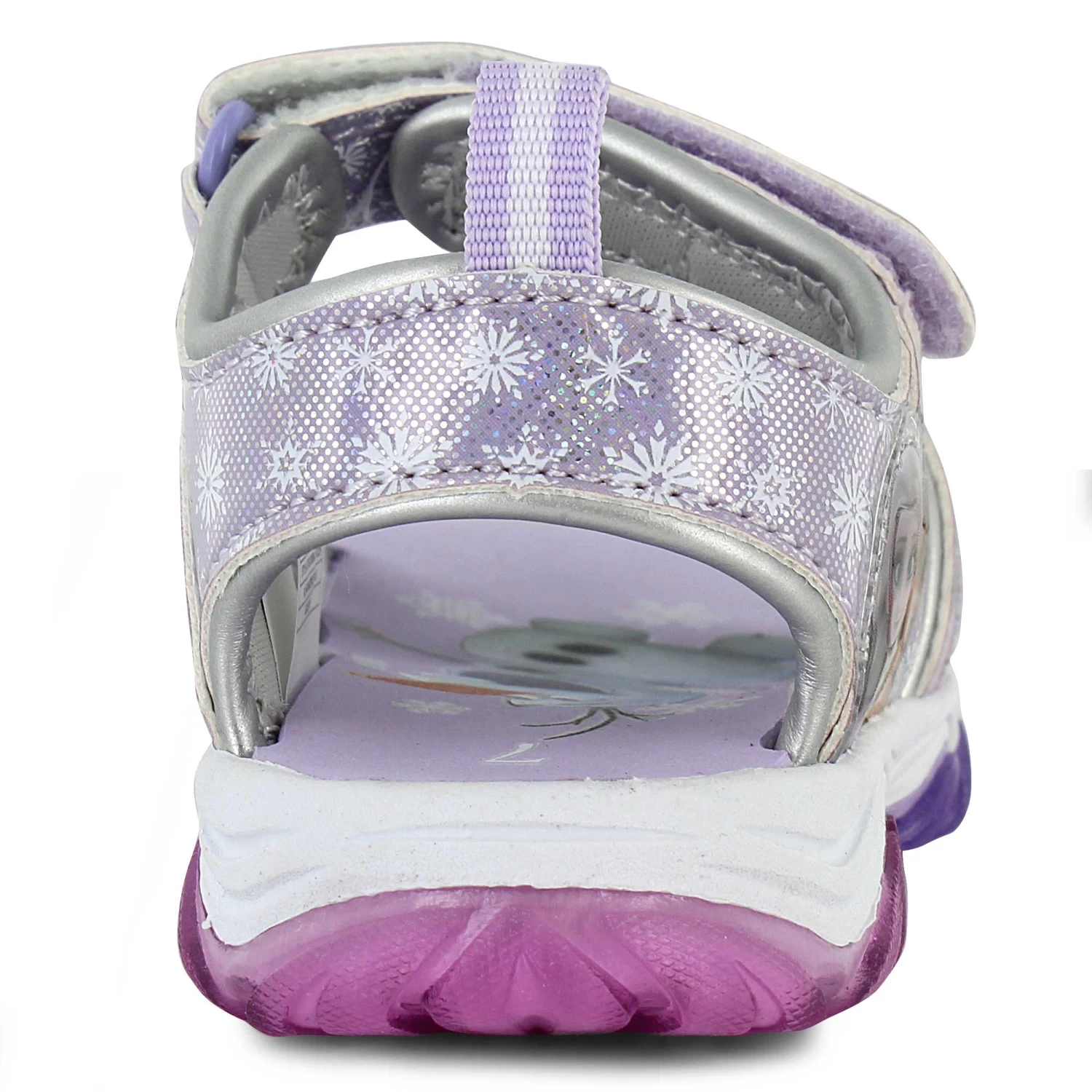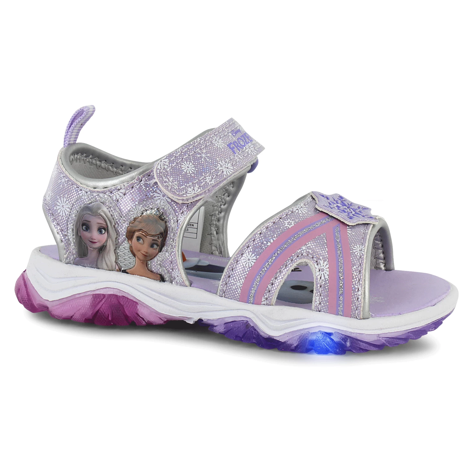 - Anna and Elsa character graphics on side and on footbed