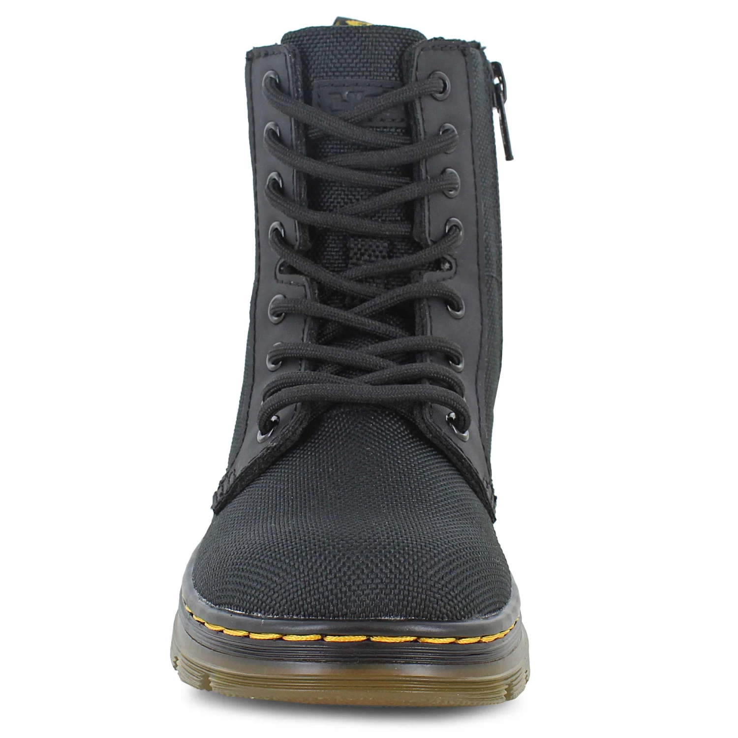 Get serious with rugged Dr. Martens Extra Tough Poly boots. As part of the Tract collection, these shoes are made for mud, movement and maybe a little mayhem. The water-repellent finish helps keep your feet dryer as you work and explore. The combat style lace-up front gives these shoes an extra tough-look while ensuring a snug fit, but the side zipper means you can get in and out of these boots in a hurry.