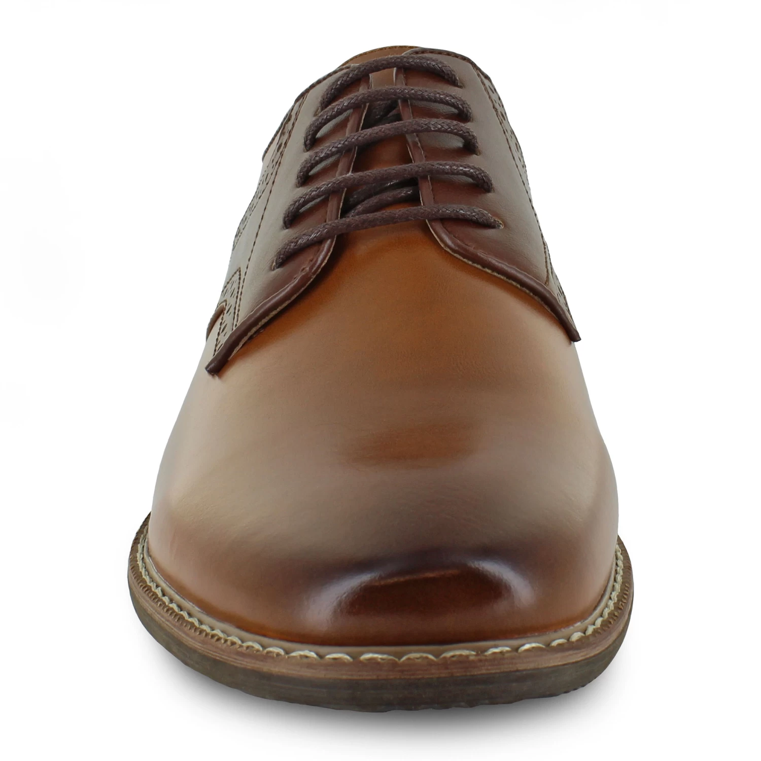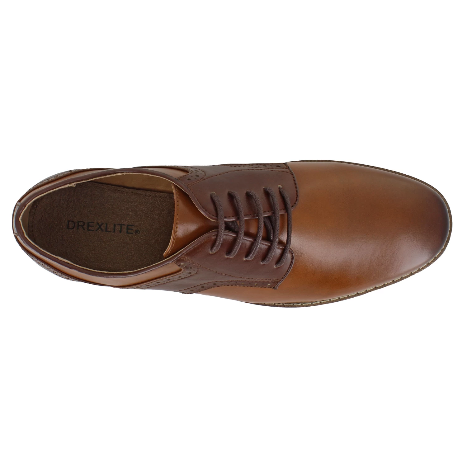 The Drexlite Lee is a handsome dress shoe crafted from a durable two-tone synthetic leather upper that creates a handsome saddle-styled oxford. Brogue detailing throughout adds a bit of flair to the design while the lace-up front closure keeps you locked in place and ready for whatever the day might bring. The cushioned insole provides all-day comfort while a synthetic outsole provides traction in the office and on the streets.