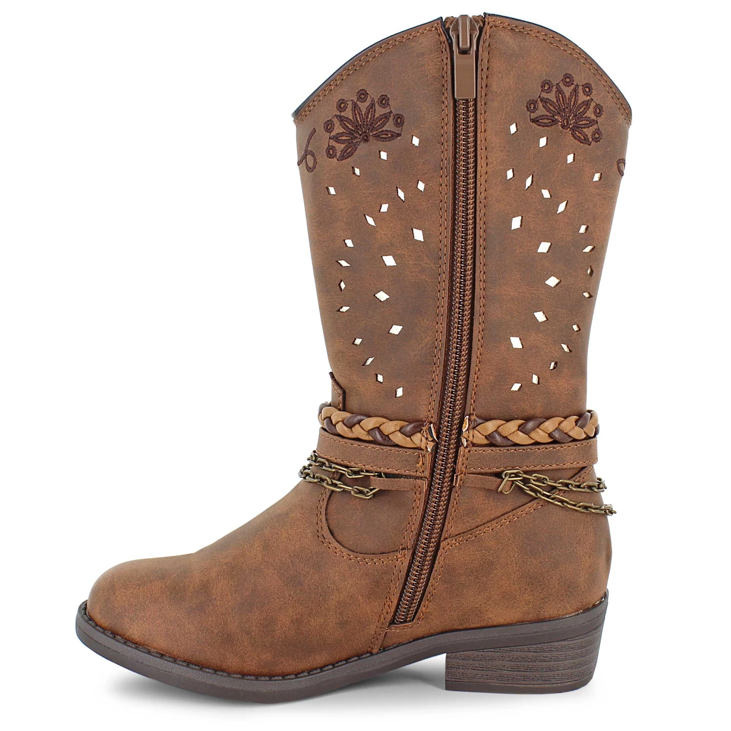 Step into western style with these cute boots by Flex West. Ornamental straps, embroidery and cut-outs decorate the upper so you can add flair to your wardrobe without any effort. The convenient side zipper means you can slip these on and be ready to rodeo in no time flat.