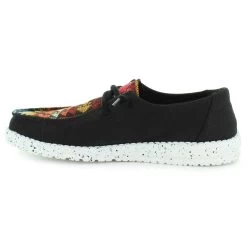 The Hey Dude Wally Linen is built for versatile comfort and style with a moc-toe slip-on design crafted with a soft organic cotton canvas upper. Featuring elastic bungee laces that allow for an easier on and off making this the perfect on-the-go casual shoe that’s lightweight and crafted for year-round wear. With the padded collar and a soft patterned fabric lining for added style as well as an ergonomic memory foam insole for extra support, the Wally Linen is here to cater to any and all lifestyles and occasions with cool casual comfort.