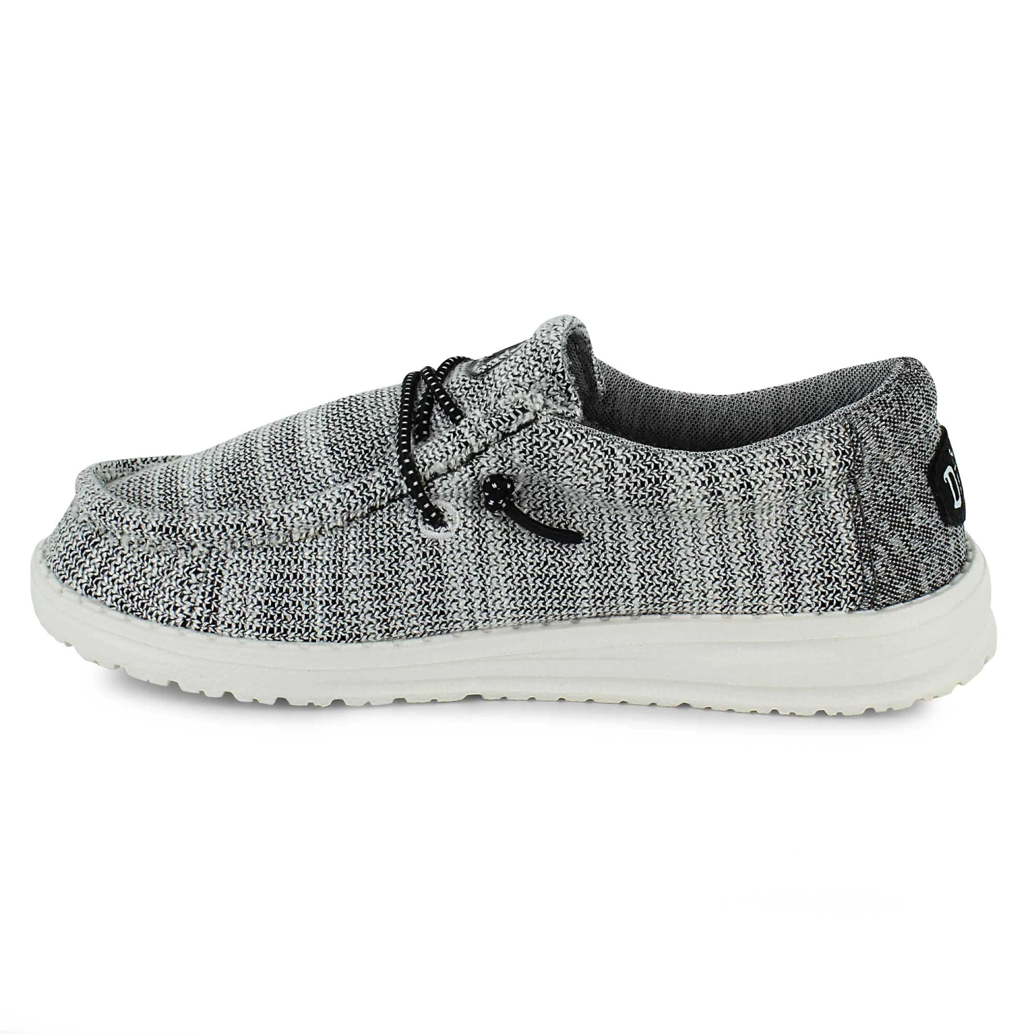 Relax in comfort and cool casual style. These lightweight Hey Dude slip-on shoes are a perfect for weekends out with friends and family or just hanging around the house. Fans of cotton fabrics will enjoy the breathable upper, and the elastic laces means these shoes stay put, even as your journey carries you further down the road.