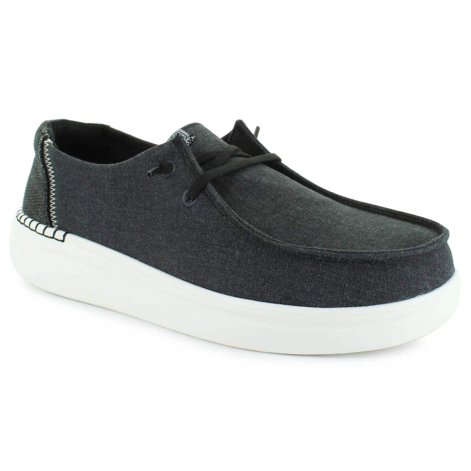 Iconic low-top moc with a custom look. Plus a little extra height and a little extra cushion. Still super lightweight. Easy-On elastic lacing system and our patented UltraLIGHT EVA outsole for superior comfort. Featuring contrasting textures and hand-stitching at the heel.