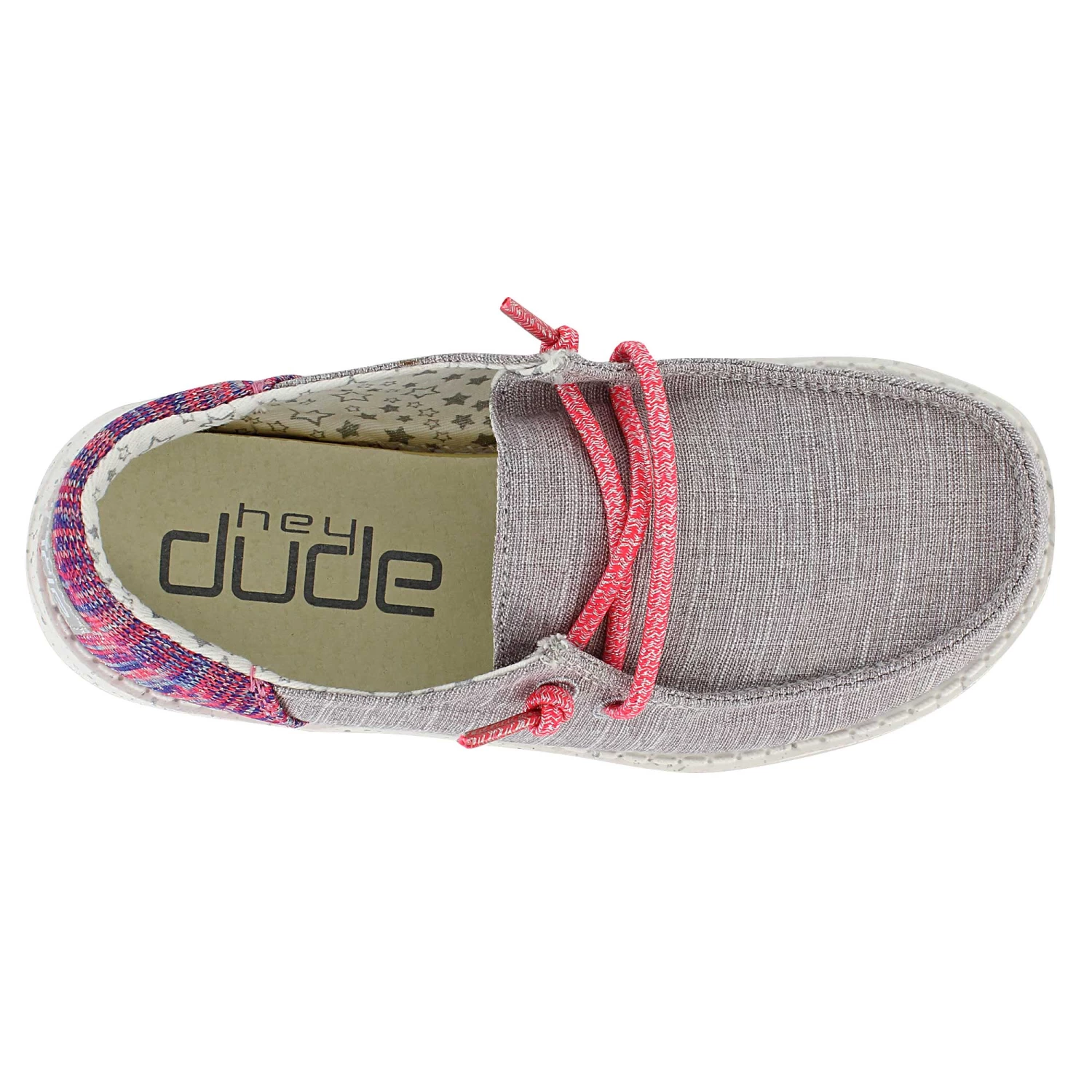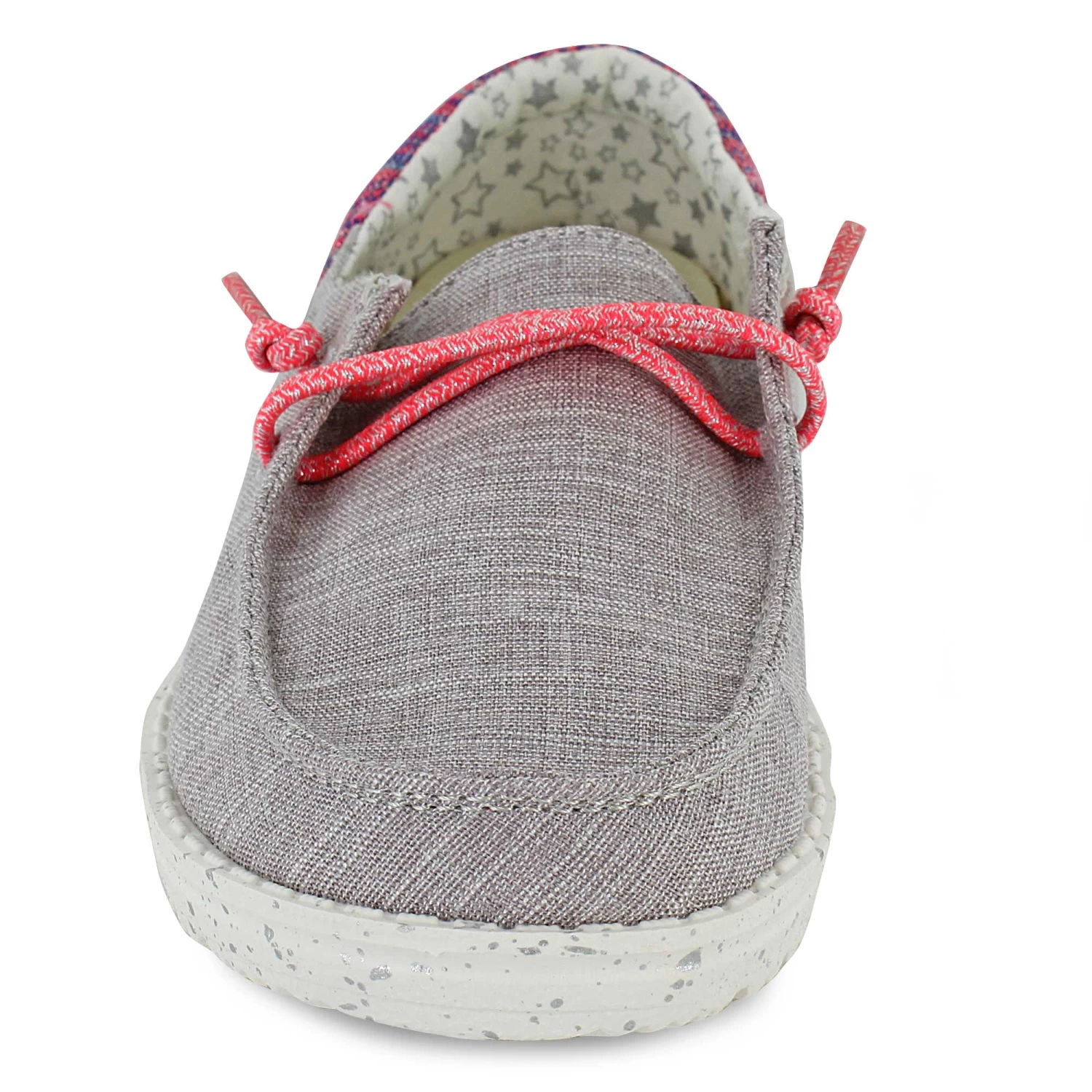 Put a subtle sparkle in your step with cool, casual slip on shoes by Hey Dude. These comfy and lightweight slip-ons are a laid-back way to enjoy fashion without pain. Fans of cotton fabrics will enjoy the breathable upper, and the elastic laces means these shoes stay put, even as your journey carries you further down the road. Available now at SHOE SHOW MEGA.