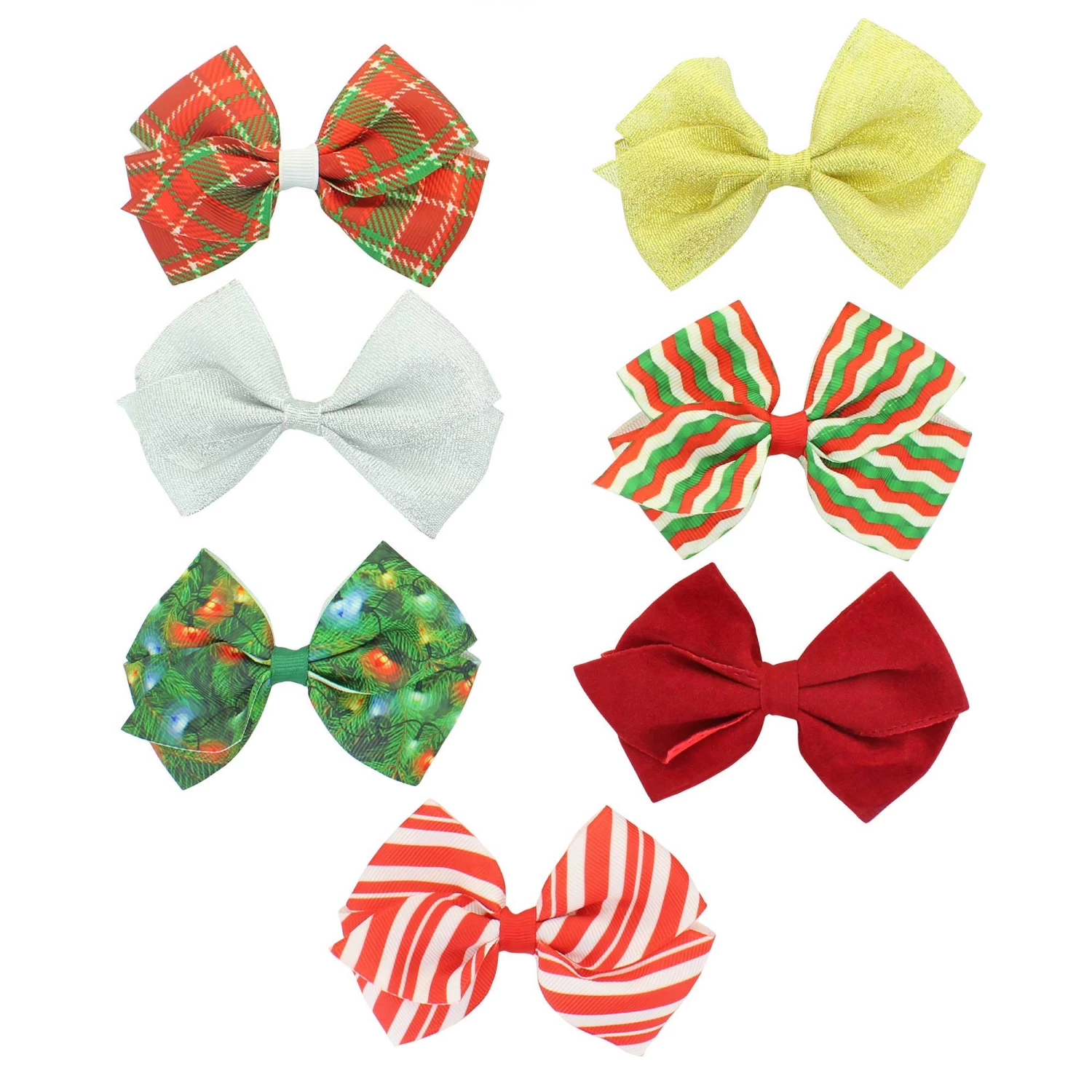This 7-piece assortment of hair bows will be a great addition to the holiday season. Add an extra touch of that holiday flair and spirit to your ensemble with one of these fabulous choices. These patterns, designs and colors will complement many different choices as you celebrate the season with family and friends.