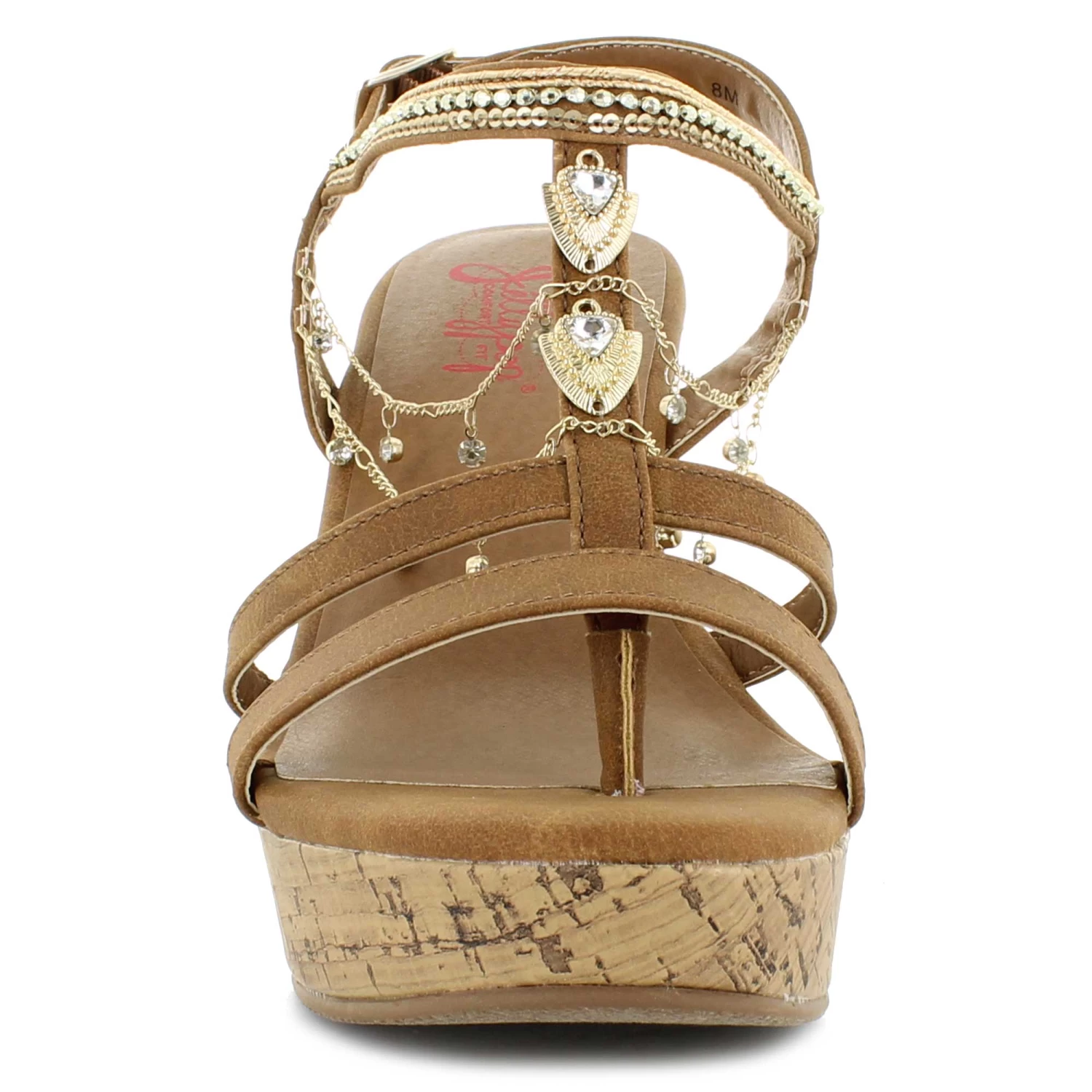 Slip your foot into this comfy wedge dress shoe by Jellypop. This style features chain and rhinestone details with a cushioned Comfort Fit insole. The side buckle closure will provide the perfect fit.