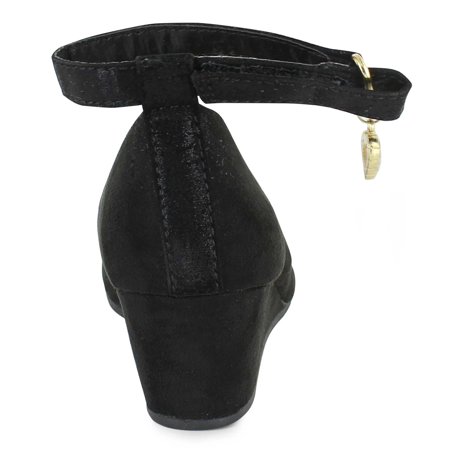 Give your party look a fresh update with these Jellypop dress shoes. The simple wedge construction is perfect for any formal occasion from holidays to family events, dances and more. A cute charm hangs on the strap closure for a perfect touch of style.