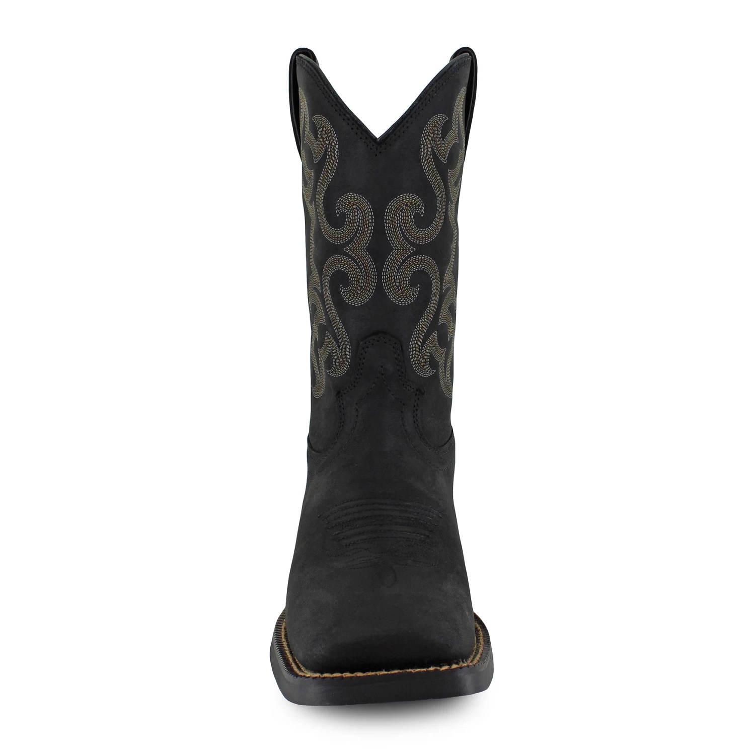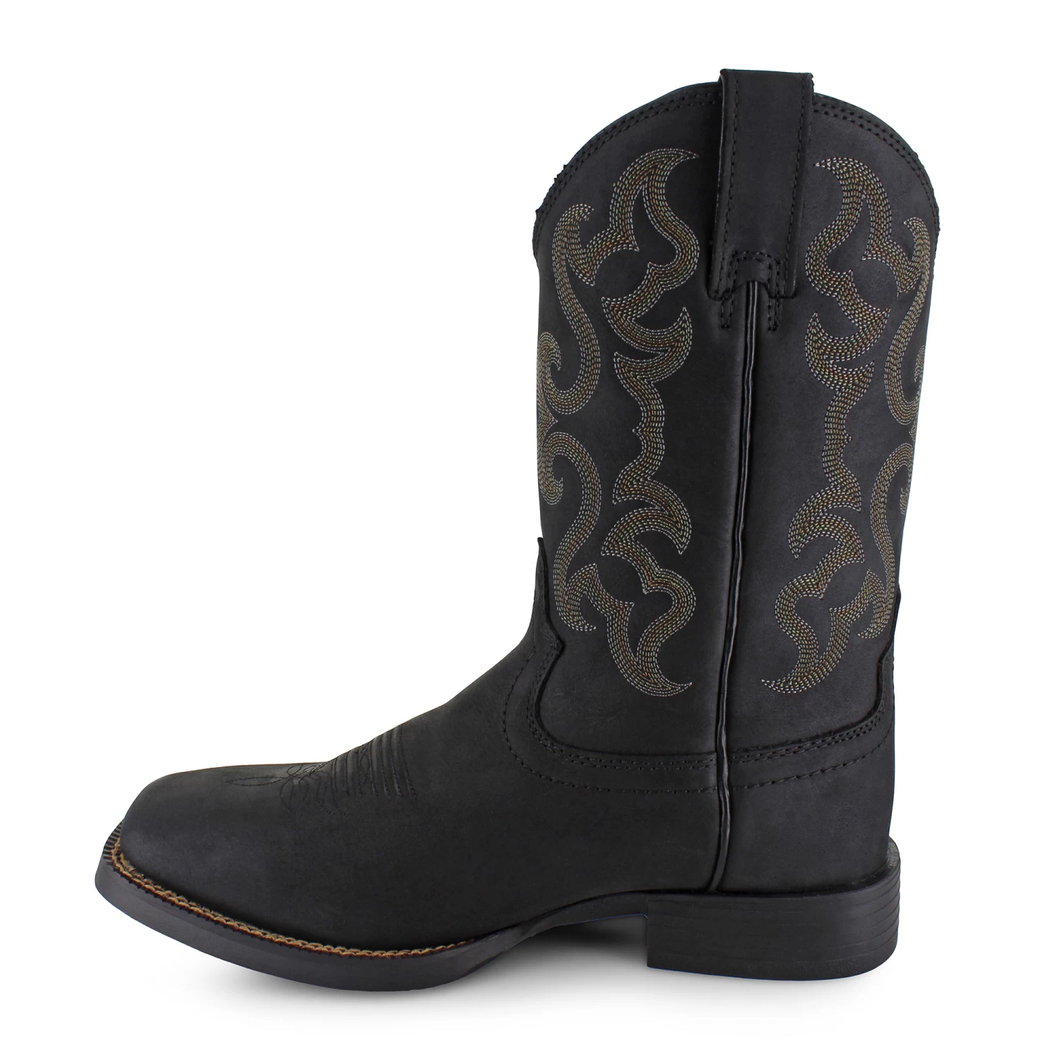 For a ruggedly handsome boot, try the Justin Stampede. This durable western boot is crafted with a full-grain leather upper to create a square-toe design. A 12″ boot shaft features decorative western stitching details for added style and dual pull-loops for an easier on and off. The cushioned insole will make even the longest days comfortable, while an oil and slip-resistant rubber outsole provide durability and traction.