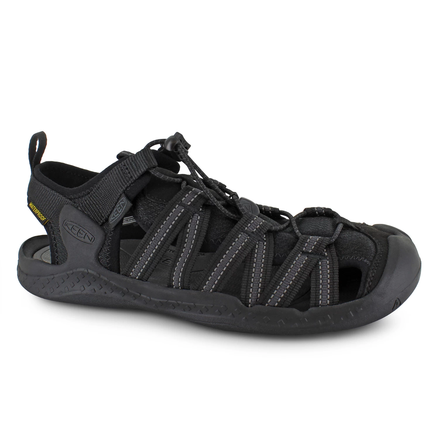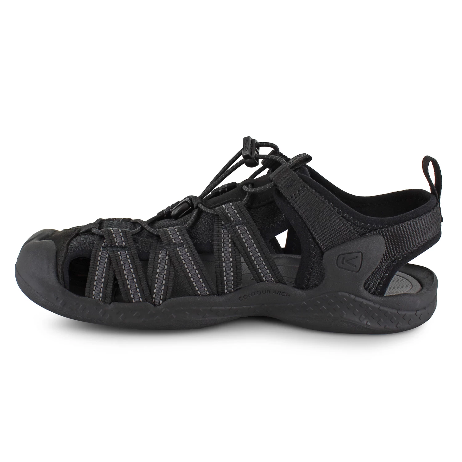 Don’t let rugged terrain get in the way of exploration. The Keen Drift Creek H2 is lightweight and crafted for durable performance with a quick-drying waterproof neoprene webbing. The Contour Arch gives a barefoot feel as well as arch support and comfort where you need it most. Featuring a One-Pull Fit quick-cinch bungee lacing system that allows for a customizable fit on the fly. Keep your toes covered with a protective rubber toecap as well as a durable rubber traction outsole for superior traction.