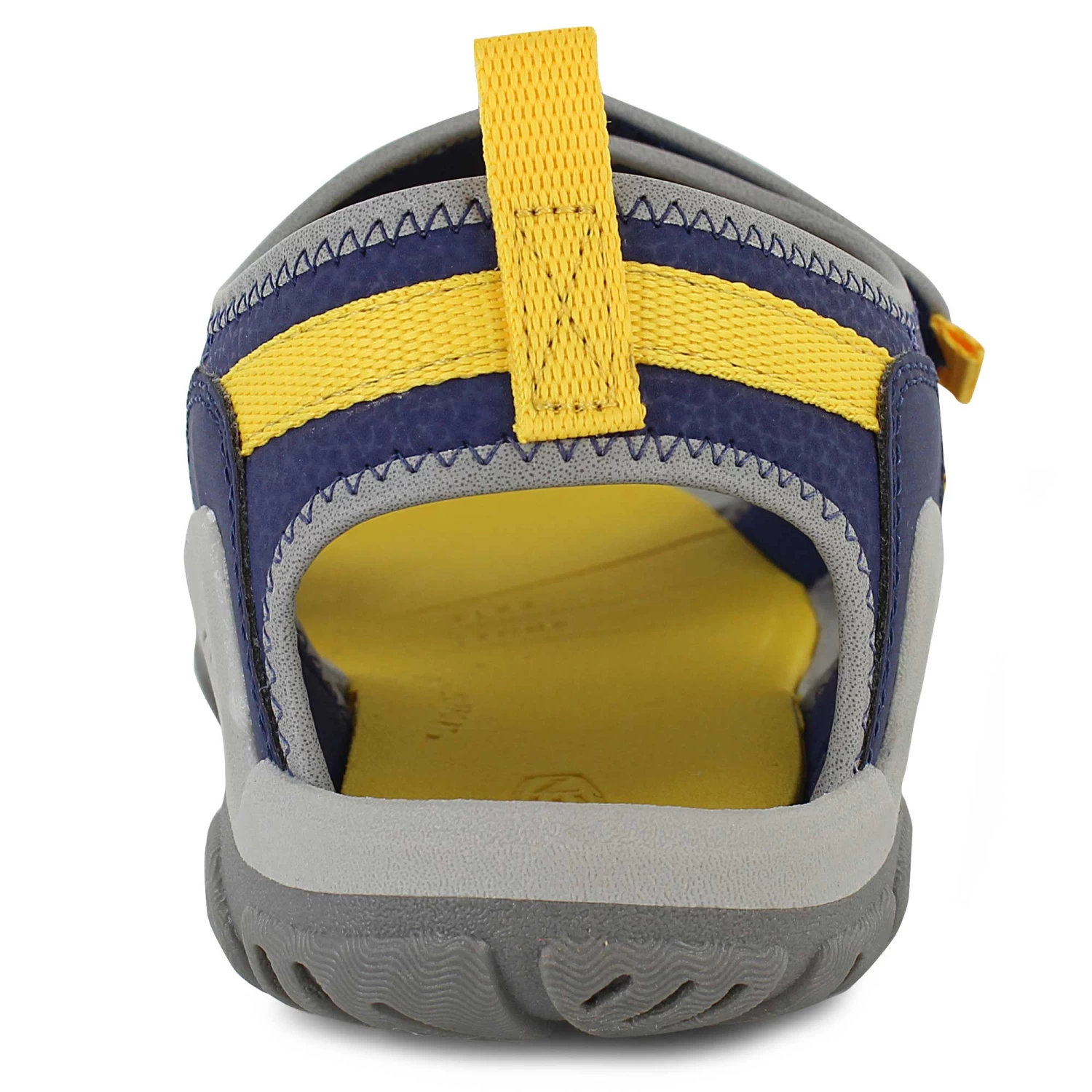 Make your way through the summer in fun Keen open sandals. These shoes feature two strap closures that ensure a secure fit as you run and play your way through the day. The lightweight supportive footbed and flexible traction outsole also keep you comfy and safe as you move. At the end of the day you can throw them in the wash for a fresh start.