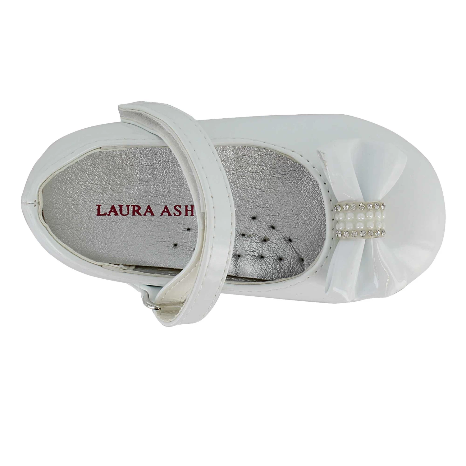 Dress them in the simplicity and style of Laura Ashley. They’ll be ready for any party, holiday or family visit with classic glossy patent mary-janes. A cute bow is just the right amount of decoration to complete a perfect look.