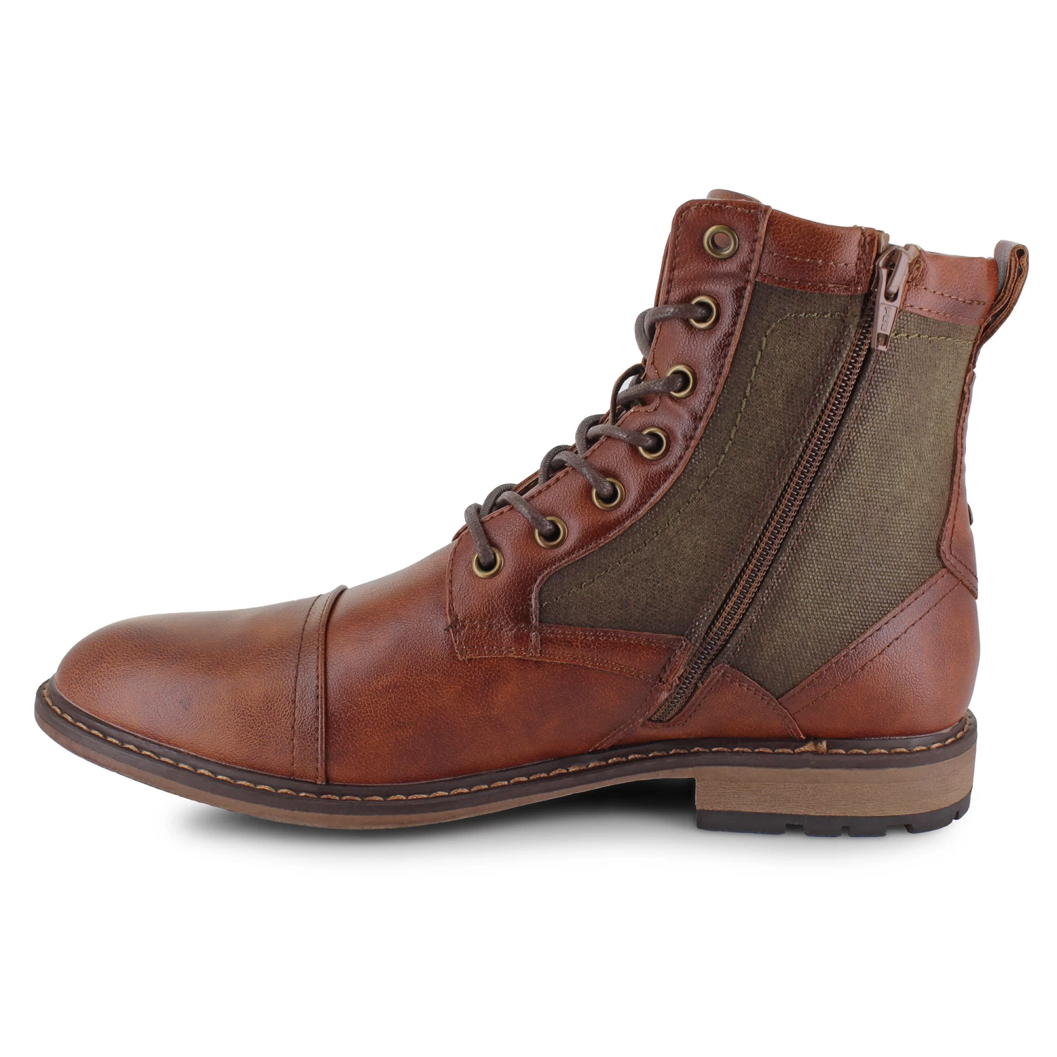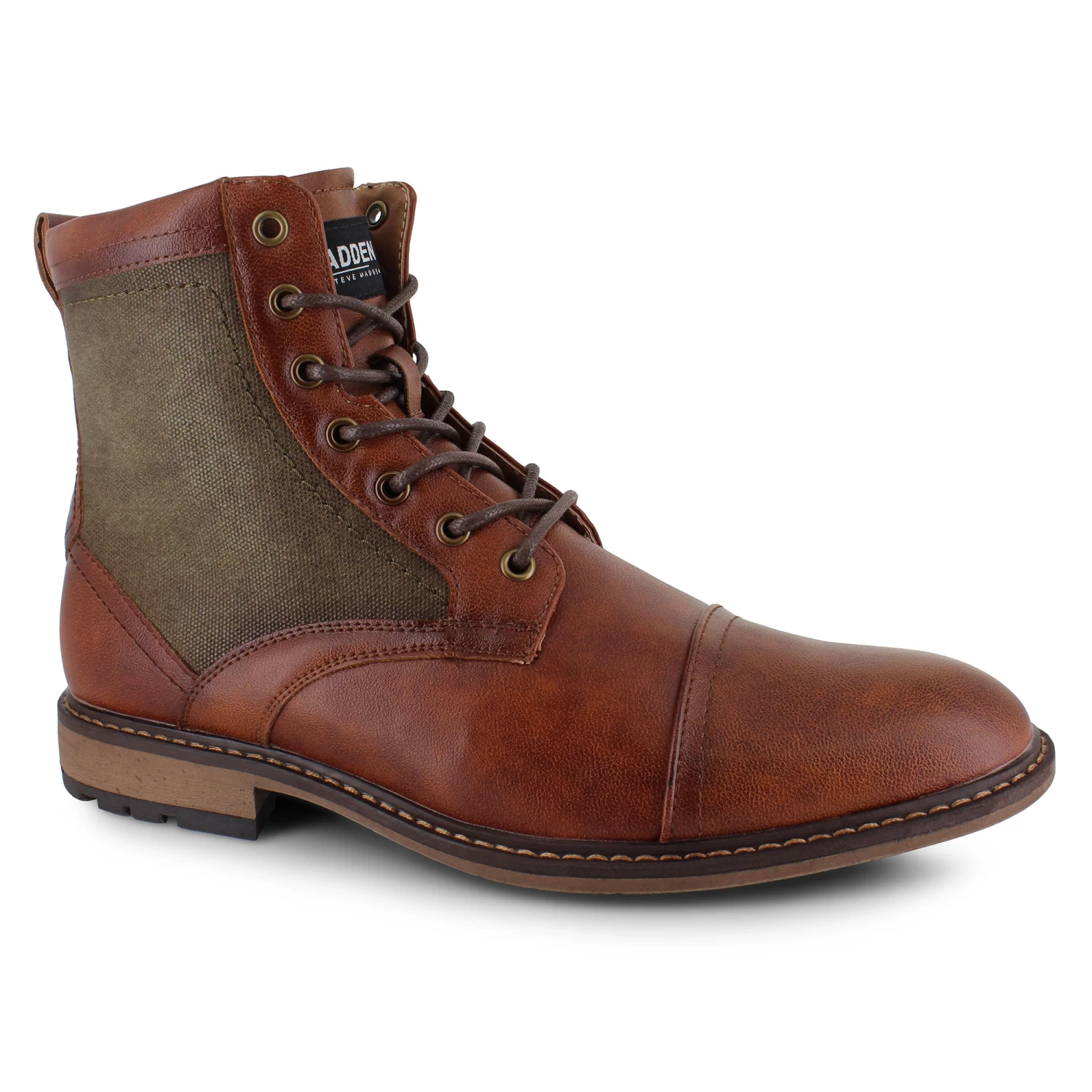 Suit up with the Madden Beelon and put the final touches on any handsome look. With a tumbled synthetic leather upper and a classy cap-toe design, this boot is the perfect addition to any closet. Pairing well with jeans and khakis, this stylish boot features a lace-up front closure and a side zipper that provide a secure fit, as well as contrasting side panels for added flair. A lightly treaded synthetic outsole that ensures superior traction on multiple surfaces.