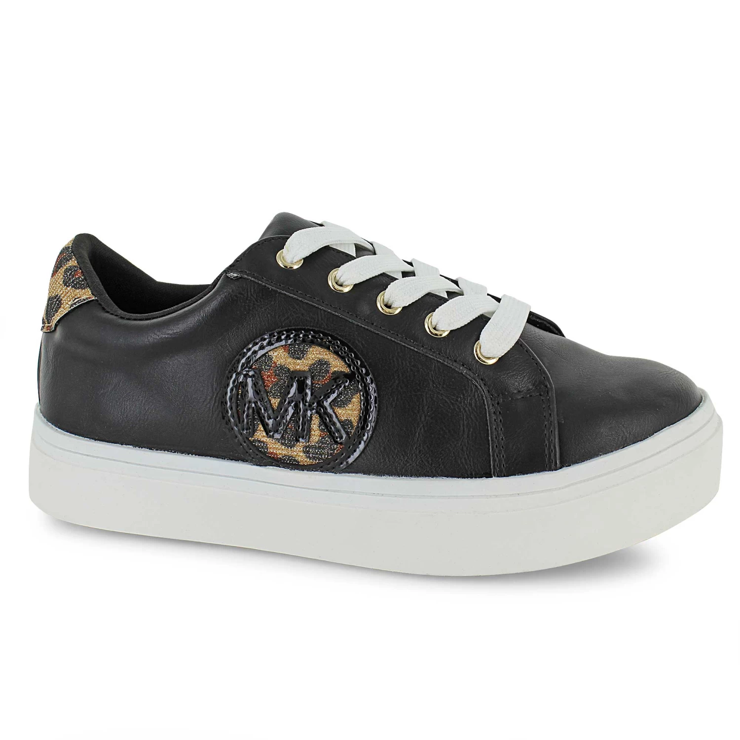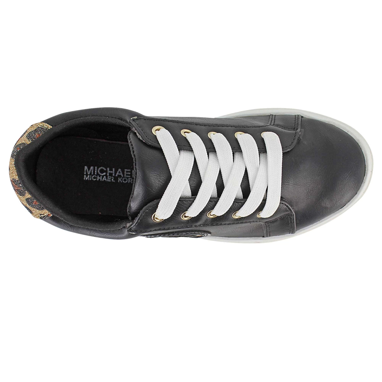 Show off in trendy Michael Kors fashion sneakers. These shoes are great for everyday activities or for casual parties and events. The glittery animal print accents and smooth faux-leather combine with jeans, leggings, shorts and more.