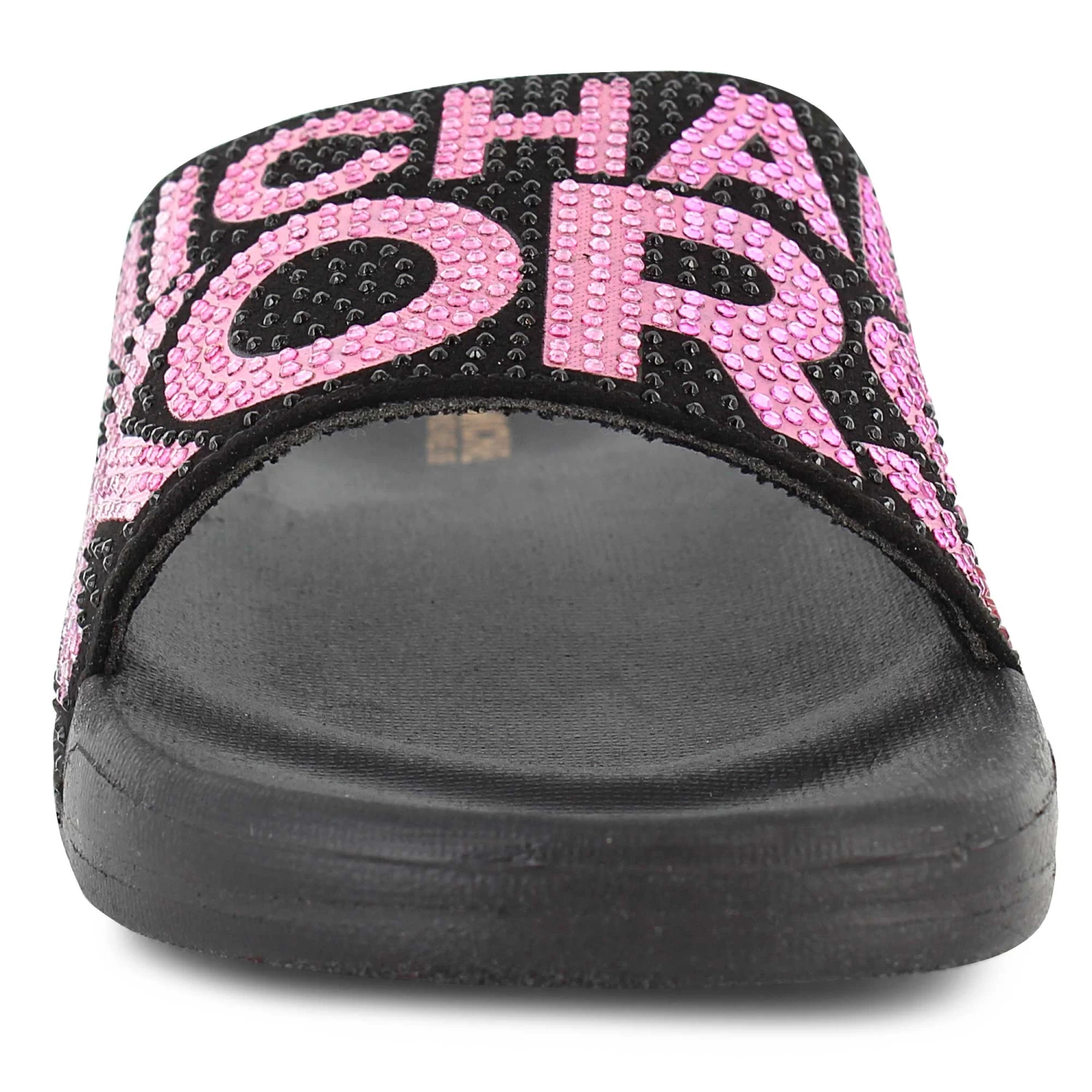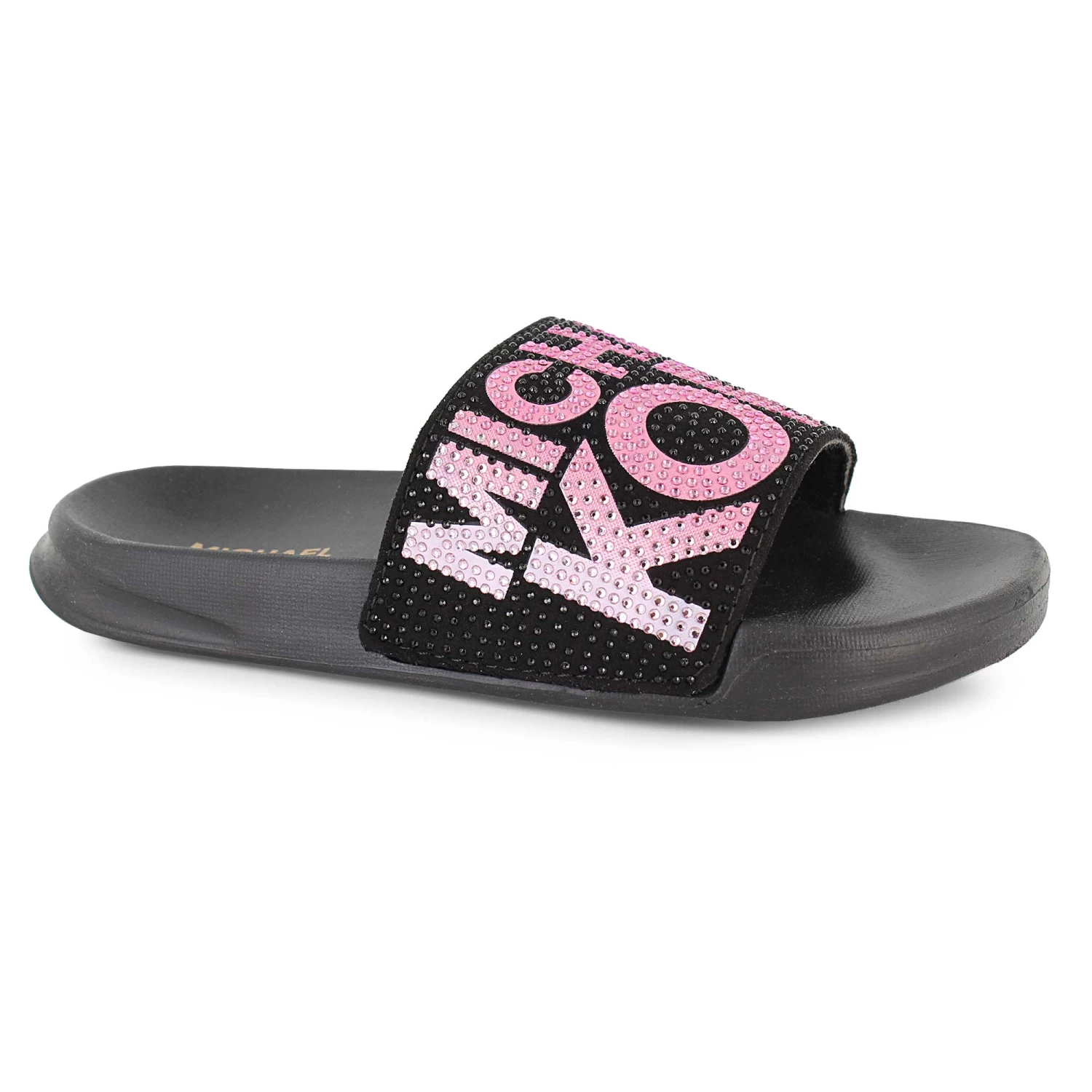 Stay stylish with chic Michael Kors sandals. Dazzle friends and family indoors or out with the flashing rhinestone logo. Pair with leggings, jeans, shorts and any other casual summer style.