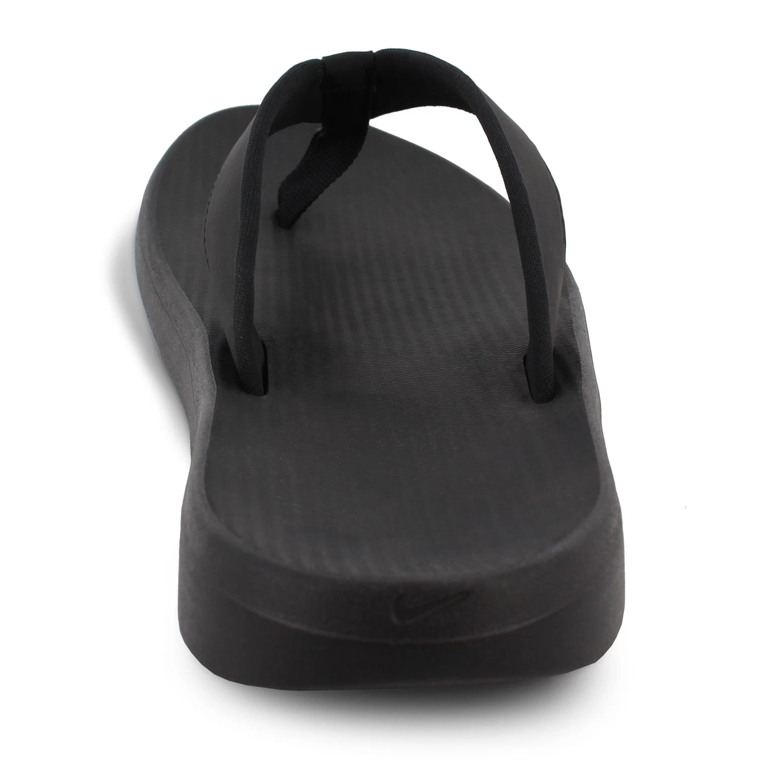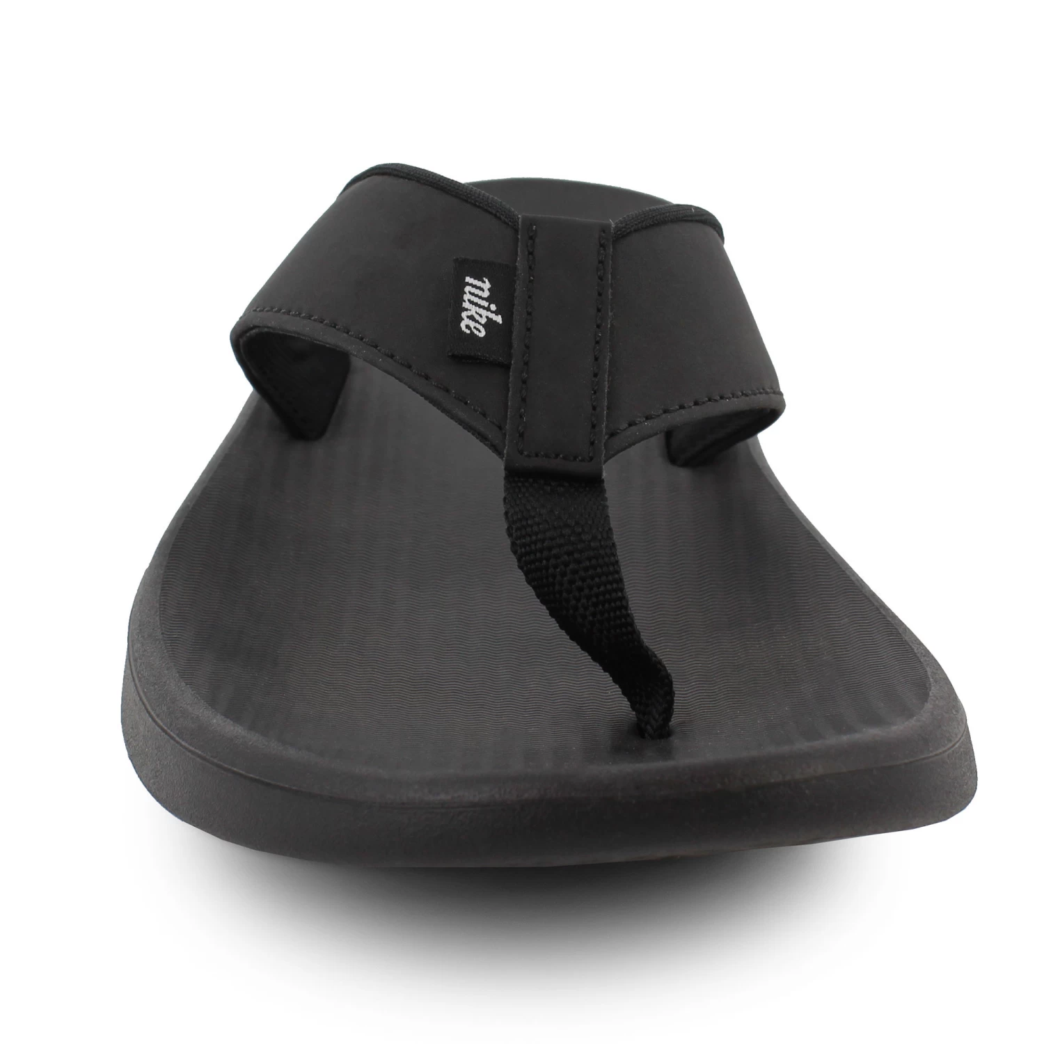 The Nike Kepa Kai Thong delivers the underfoot comfort of dual-density foam in a casual thong, ideal for all-day wear in warm weather. Its wide, synthetic leather provides a secure fit, while herringbone texture on the footbed and outsole enhances traction to help prevent slip.