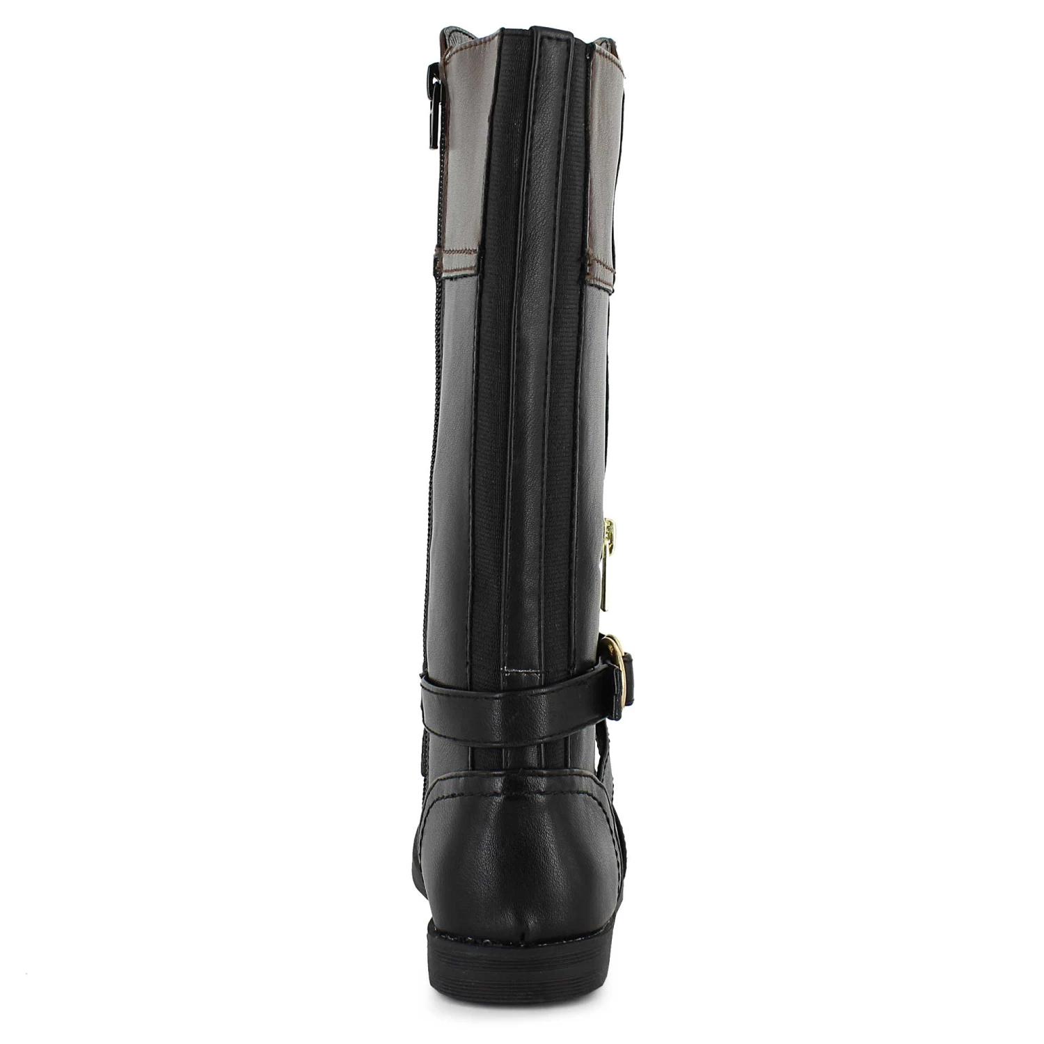 Dress your feet in big style. These Nine West fashion riding boots feature decorative straps and zippers that raise any look up in sophistication. The convenient side zipper and elastic panels make them simple to put on and start moving. Pick them for big days out with the family when you want to look your best.
