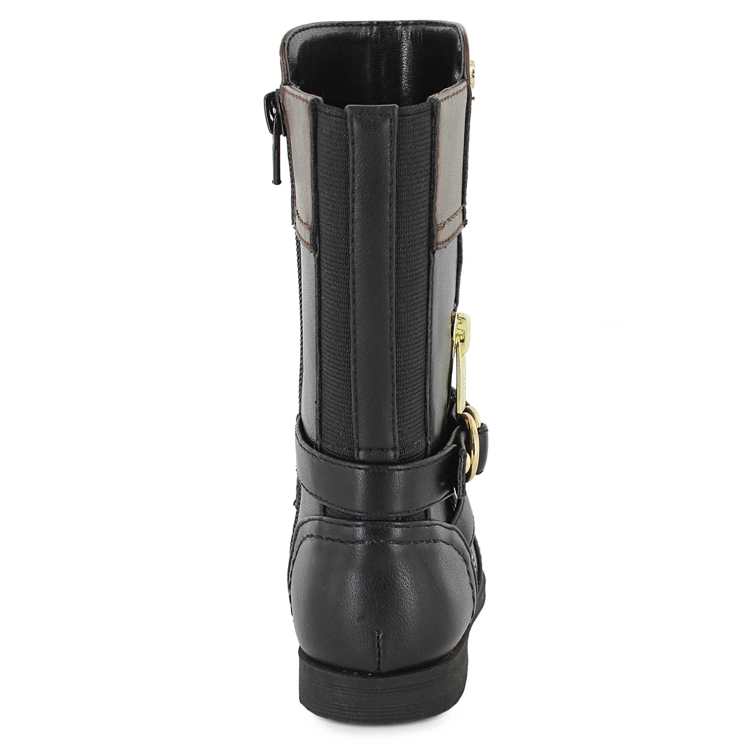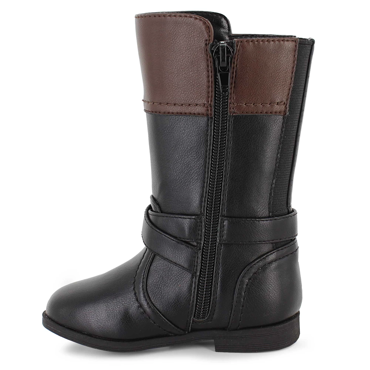 Dress their little feet in big style. These Nine West fashion riding boots feature decorative straps and zippers that raise any look up in sophistication. The convenient side zipper and elastic panels make them simple to put on and start moving. Pick them for big days out with the family when you want them to look their best.