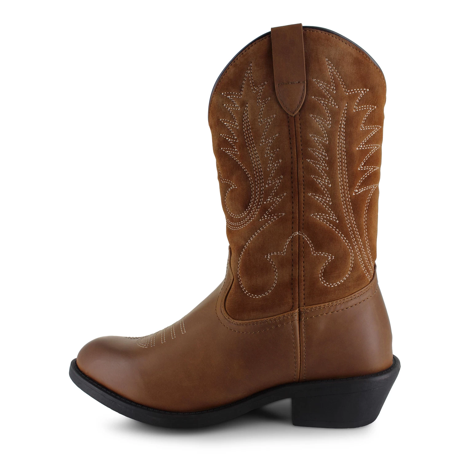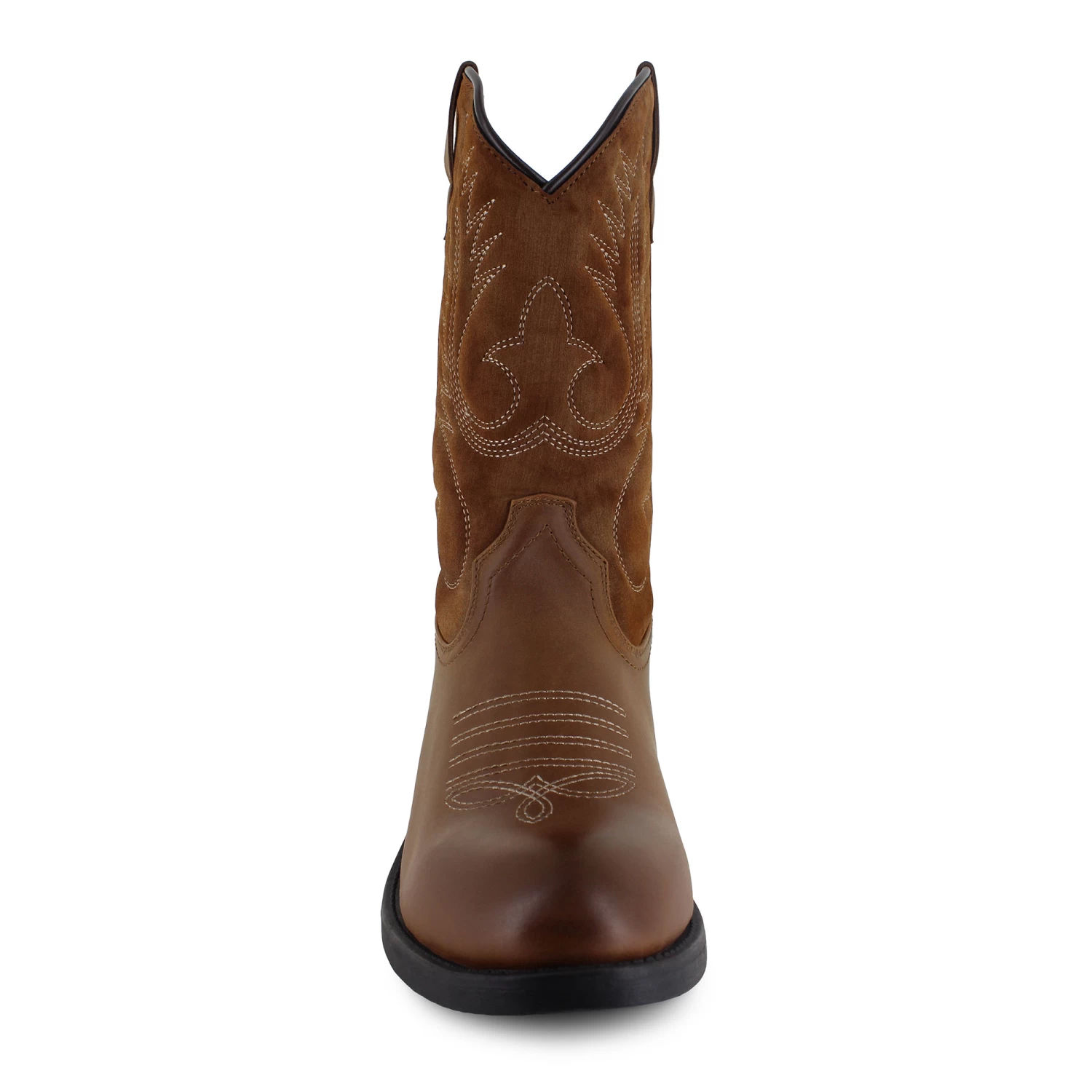Wrangle in a ruggedly handsome look for the season with the Outbound Trading Co. Western. This handsome cowboy boot features a synthetic leather upper that pairs well with jeans and khakis. With a boot shaft decoratively stitched with western designs and a raised cowboy heel for added style, this boot is ready for work and play. The cushioned insole will make even the longest days comfortable, while a rubber outsole provides durability and traction for all-day wear.