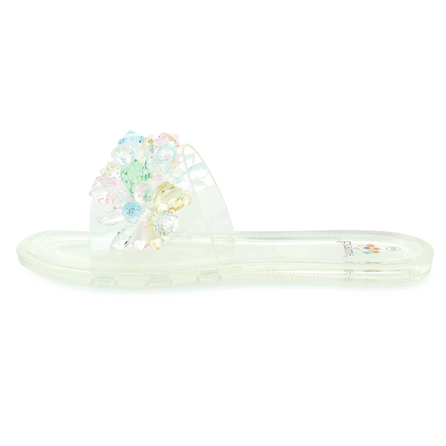 Slip into the clear choice for cool summer fashion with these Palms sandals. This footwear choice will add some extra bling to your warm weather ensembles. Step out in style with this fabulous jeweled design. Shop SHOE SHOW MEGA today.