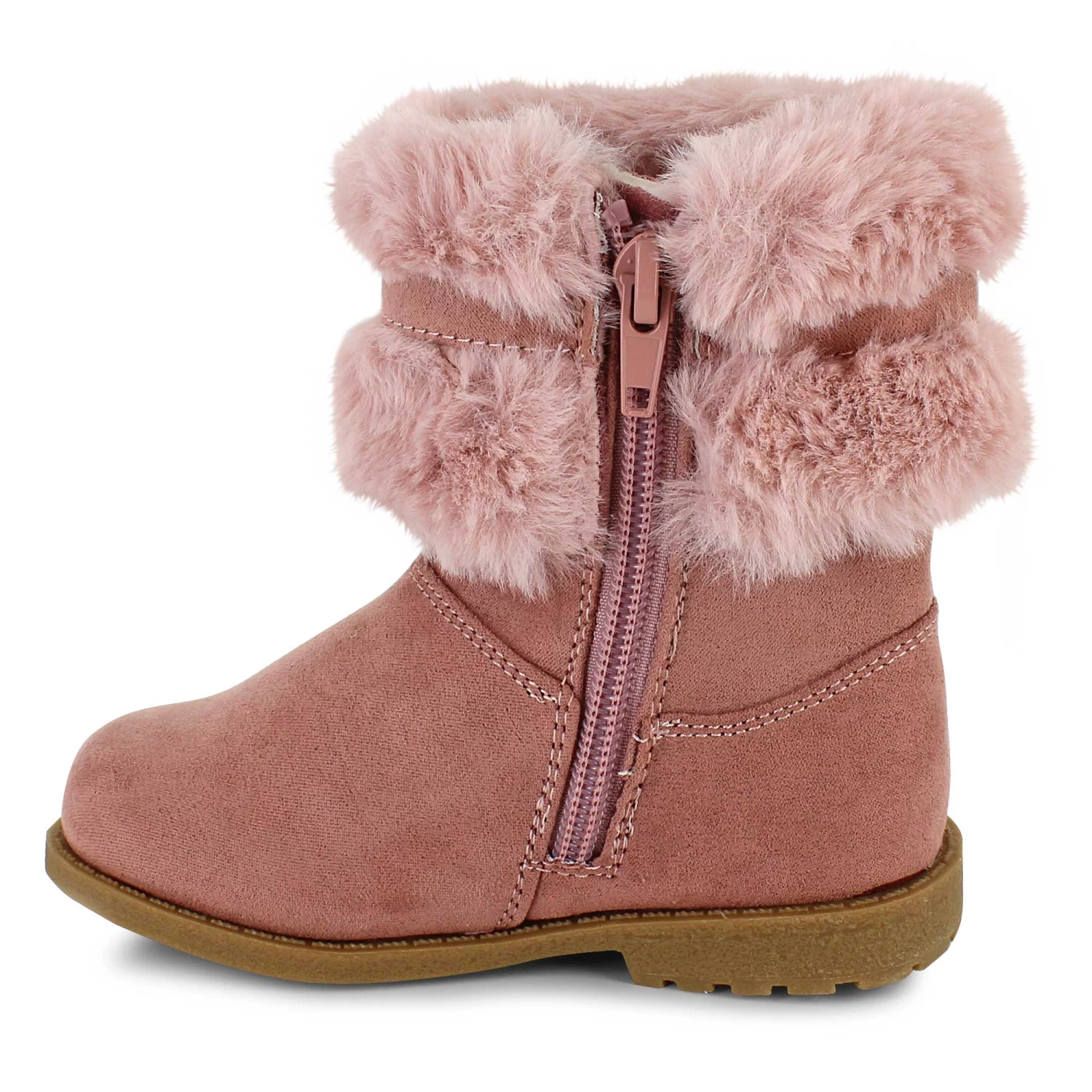 Prepare them for a day of style with cute and cozy Rachel boots. Featuring fluffy faux-fur trim and sparkly embellishments, these shoes are great paired with legging, skirts, jeans and more. The side zipper makes them easy to access for little hands on the move.