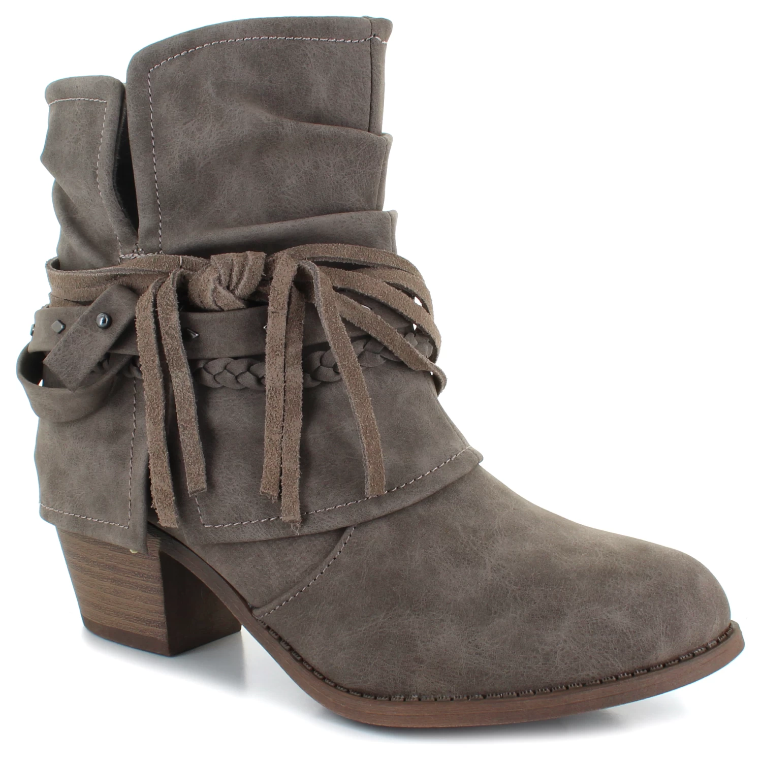 Stay cozy and comfortable on those cold winter days in the Shimmer by EDL Marcela. This style features strap details with stud accents. The inside zipper closure will provide an easy on and off.