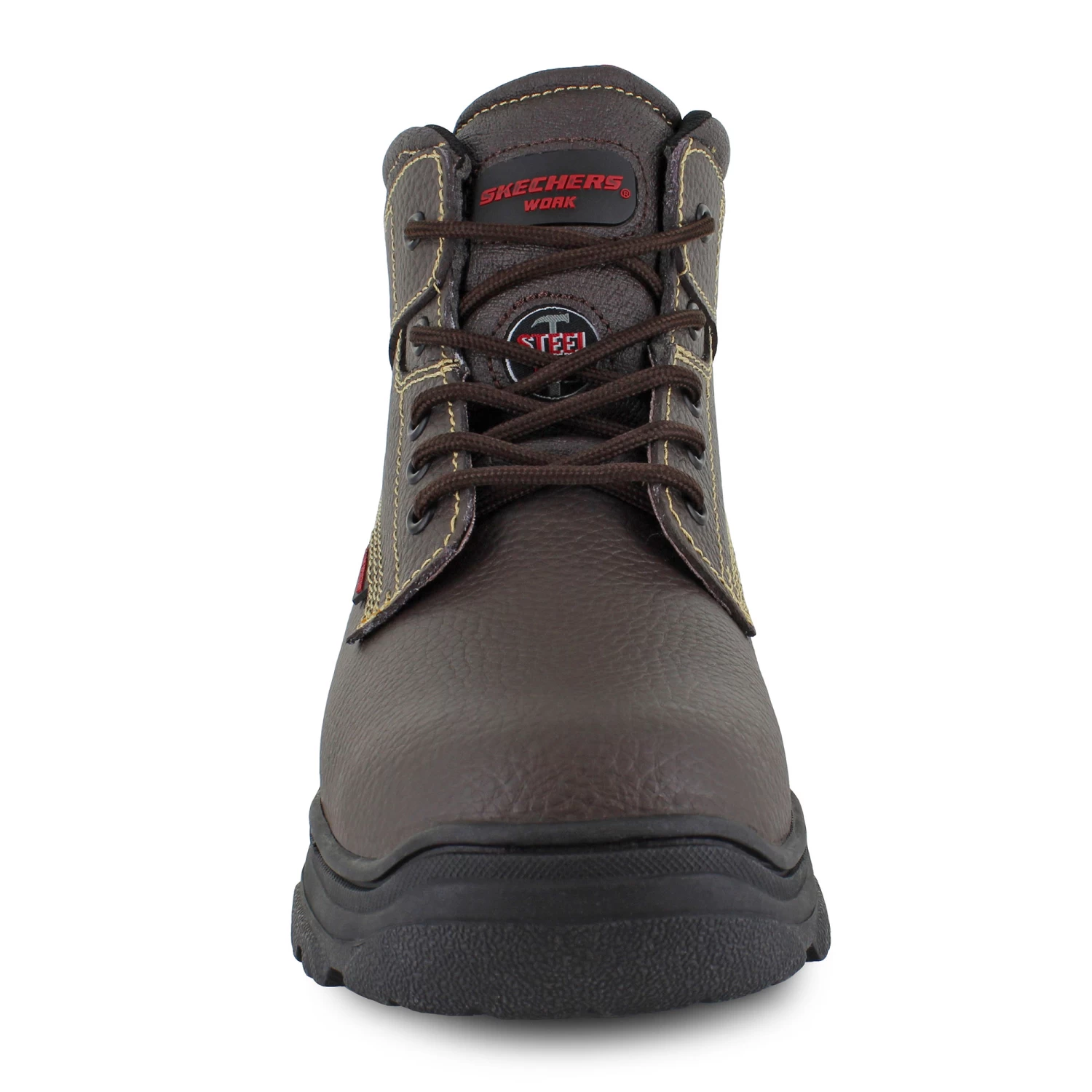 Engineered for safety and comfort, the Skechers Burgin – Tarlac features a steel-toe ankle boot design with a puncture-resistant insole as well as an electrical hazard safety rating. A durable leather upper protects your foot in style with contrasting accent stitching to add a bit of flair. A padded gusseted tongue and collar combine with a lace-up front closure that secures your foot in place and offers support through the ankle. The Air Cooled Memory Foam insole pairs with a shock-absorbing midsole to cushion your foot with every stride while keeping you on your feet with a high-traction oil and slip-resistant rubber outsole.