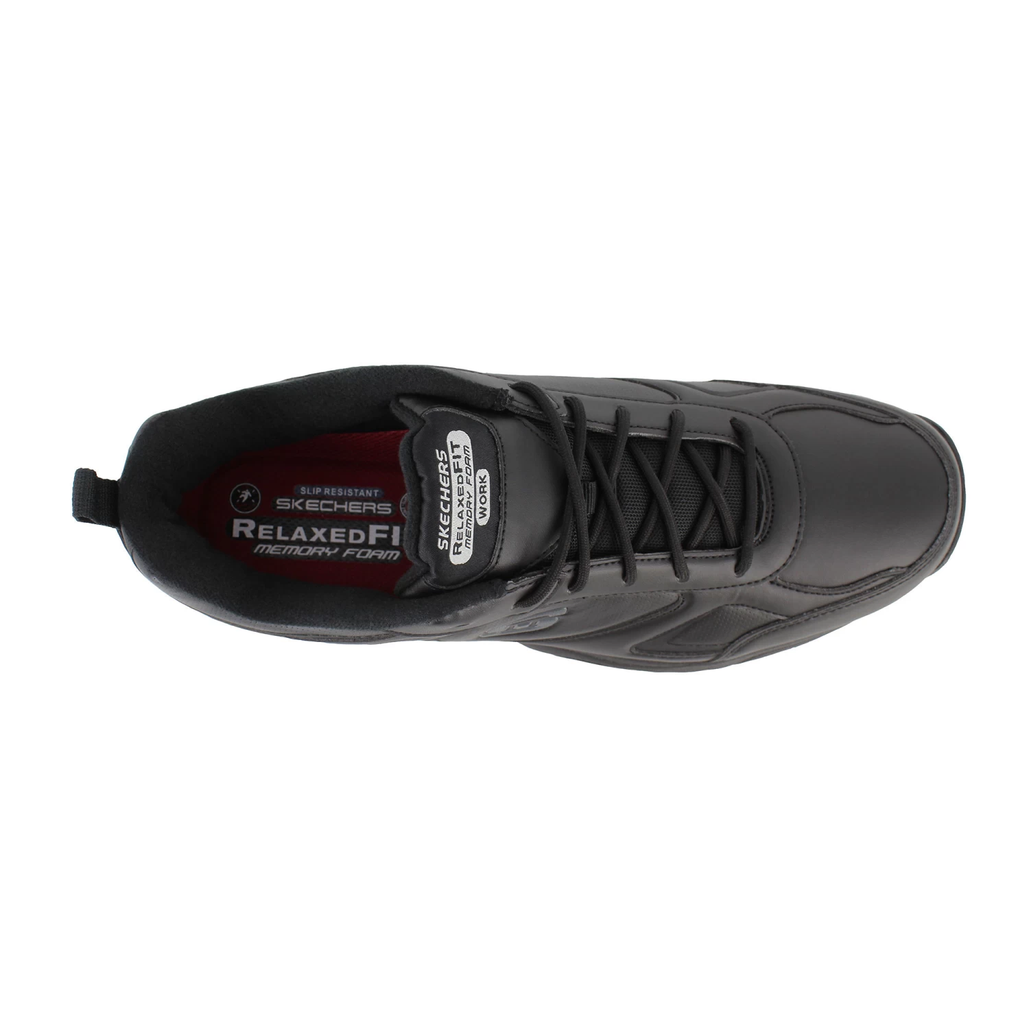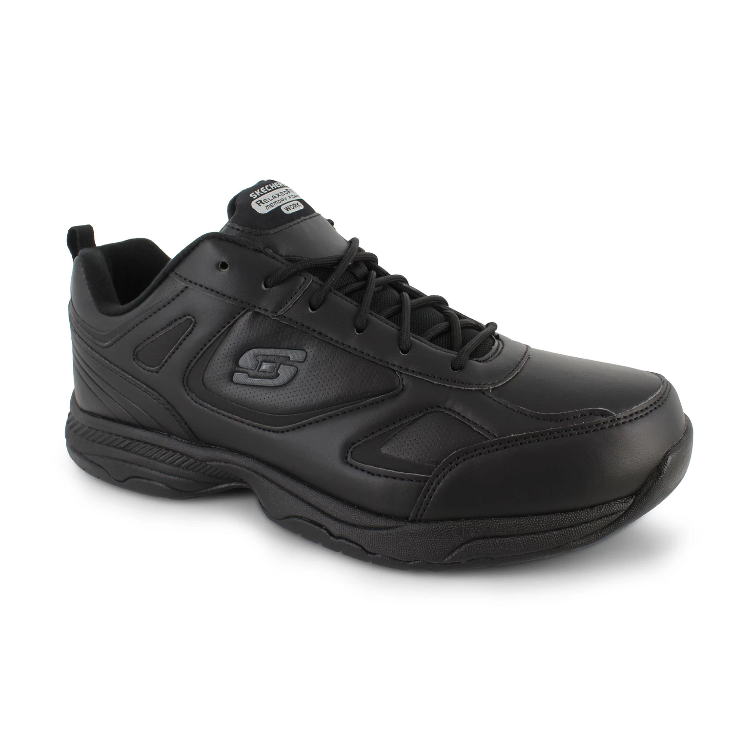 For a shoe that works just as hard as you do, try the Skechers Dighton. This slip-resistant work shoe will keep you comfortable on your feet throughout any kind of job with an electrical hazard safety rating, durable synthetic leather upper, and a Relaxed Fit Memory Foam insole. Reinforced stitching seams, a padded tongue and collar for extra support, lace-up front closure for a more secure fit, and micro-perforations on the upper to keep your foot cool, the Skechers Dighton is anything but your typical work shoe.