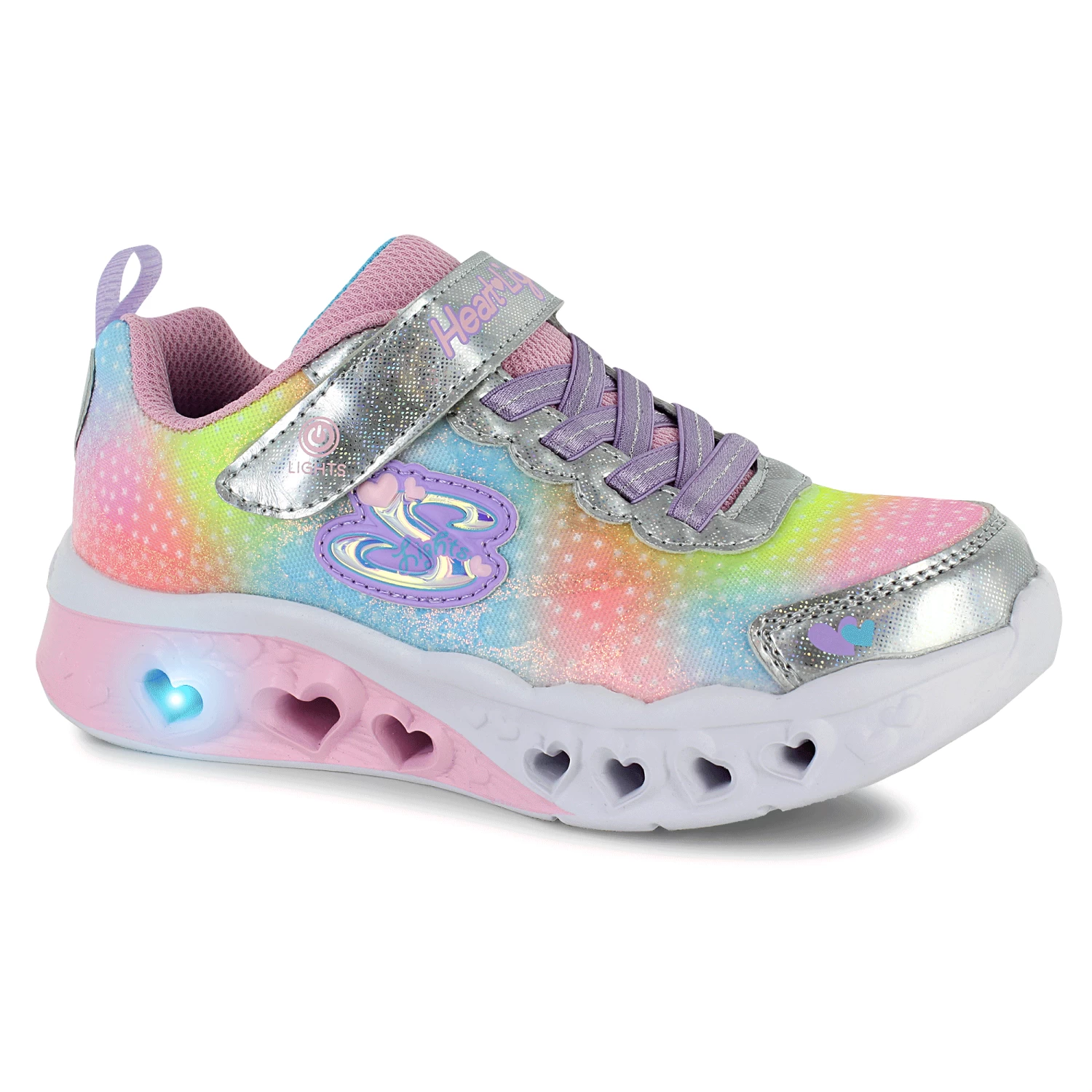 Become the center of attention in these brilliant Skechers light-up sneakers. Featuring a sculpted midsole, glitter-ombre design and fun flashing lights, these shoes are a sure winner for any day of casual wear. The helpful strap closure and elastic laces make them easy to secure so you’ll be sure of a perfect fit everywhere you go.