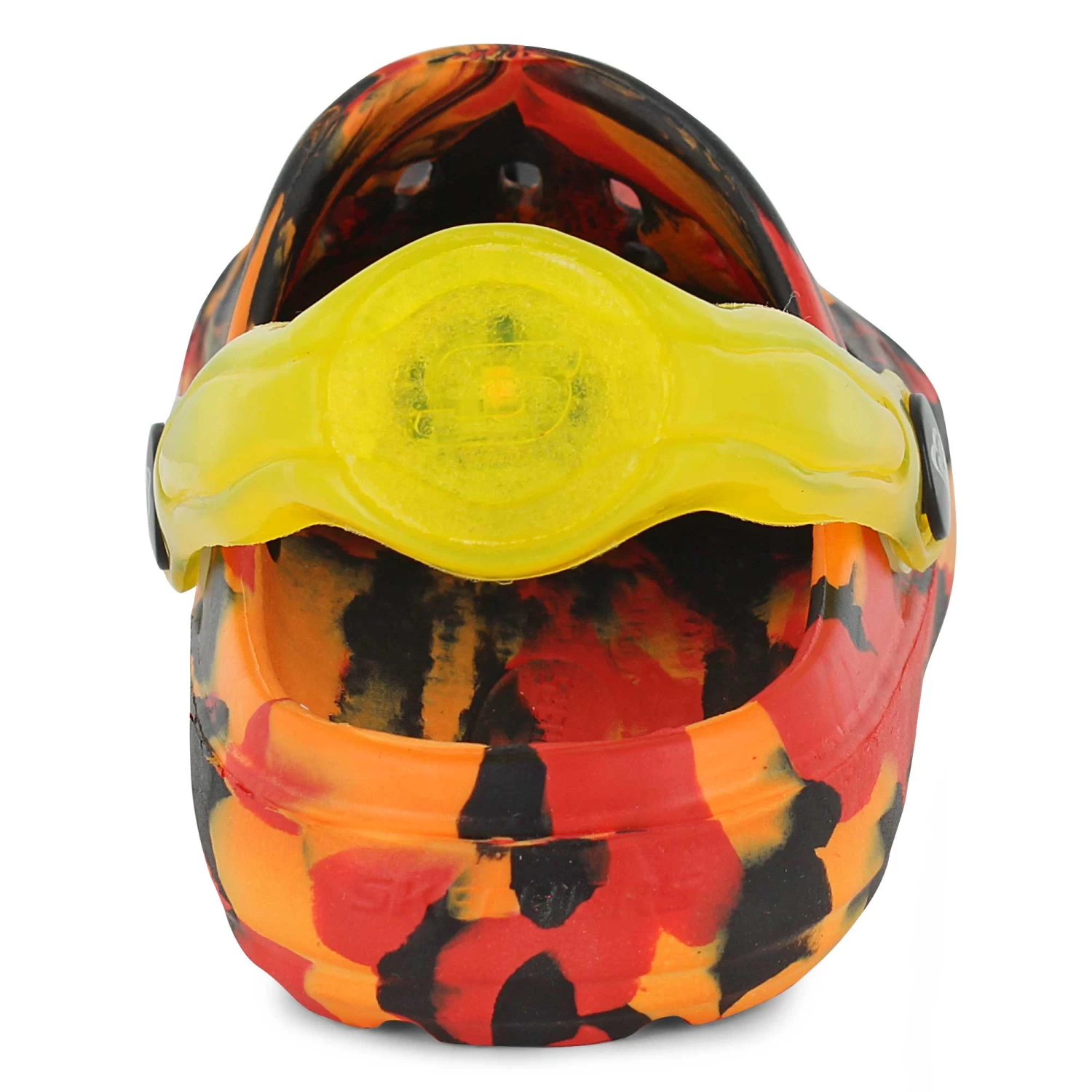 Light up the fun with the bold Skechers play clogs. The comfy EVA upper is flexible and features ventilation ports so they’ll keep cool and dry throughout the day. The adjustable heel strap lights up with every step, ensuring they’ll stay in the spotlight everywhere they go.
