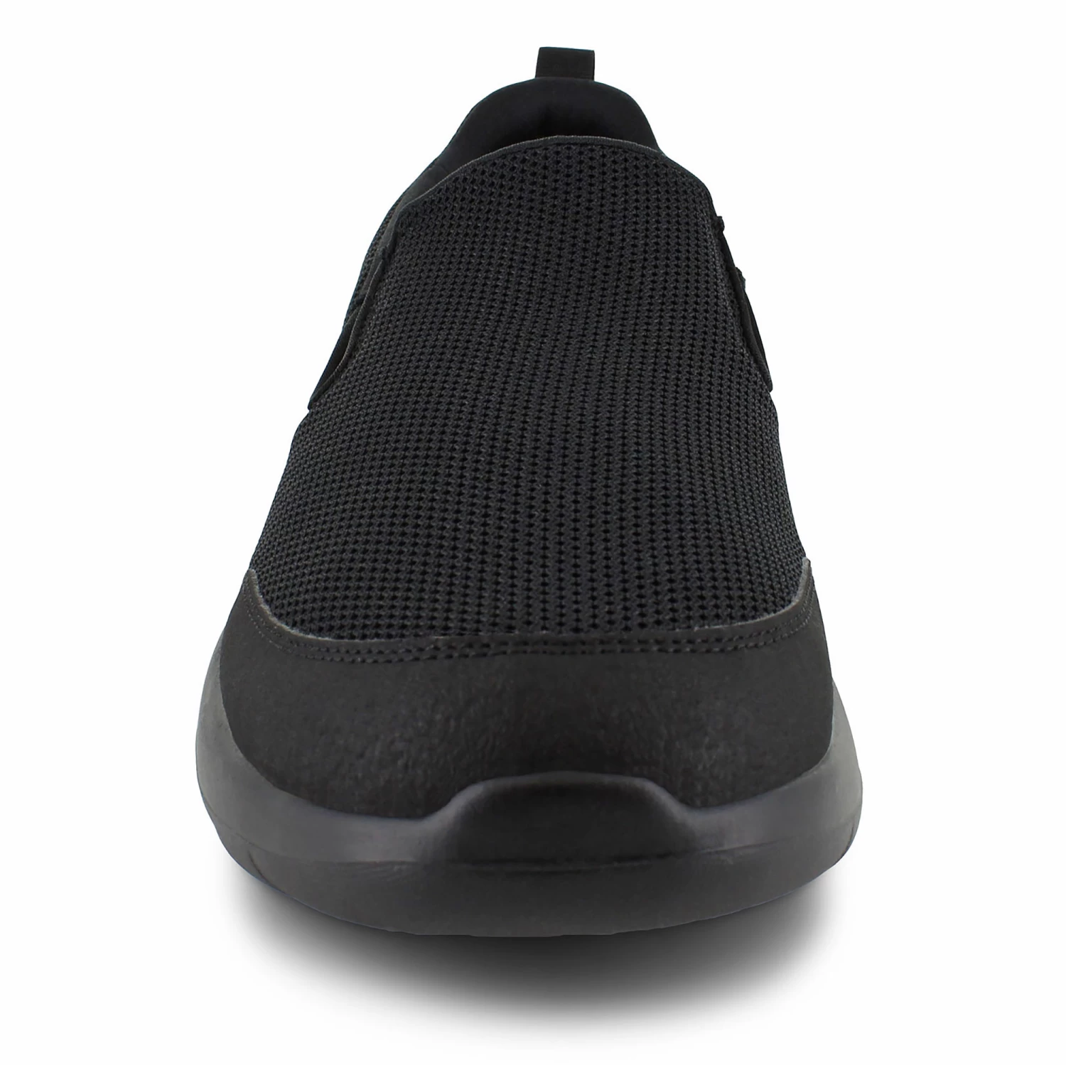 Slip-on and take off in the Skechers GOwalk Max – Clinched. With a breathable mesh fabric upper and a lightweight slip-on design, this shoe is ready to tackle whatever your day might throw your way in comfort and style. Engineered for optimal comfort with an Air Cooled Goga Mat insole for all-day comfort while the GOwalk Max midsole provides responsive support through each stride. A 5Gen outsole provides durable shock-absorbing traction.