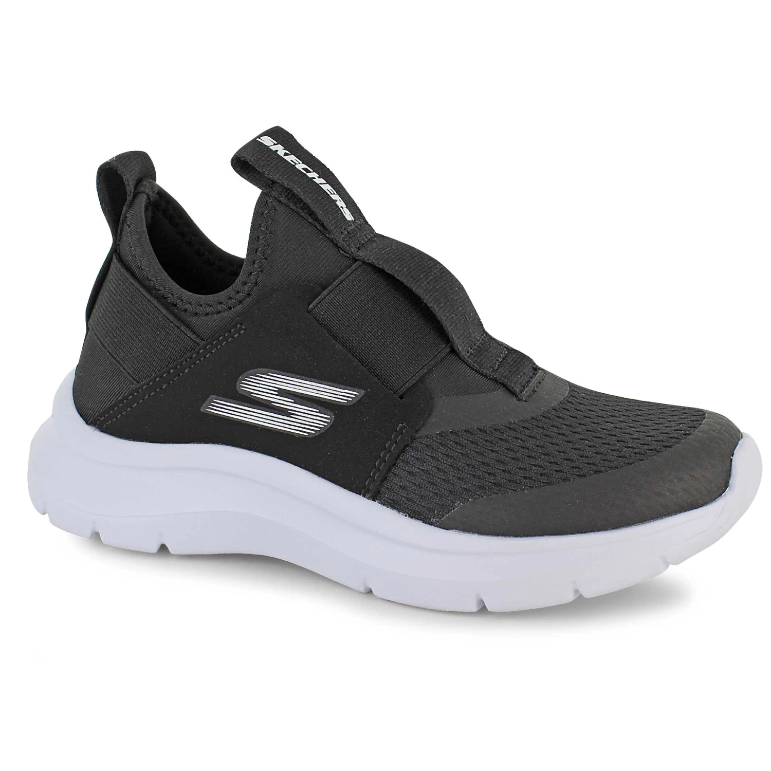 Go fast and play hard with fun Skechers slip-on shoes. The stretchy elastic and lightweight construction combine with a cushioned interior for all-day comfort. Wear them on summer adventures with friends or walk the school halls in confident style, and when they get dirty throw them in the washing machine for a fresh start.