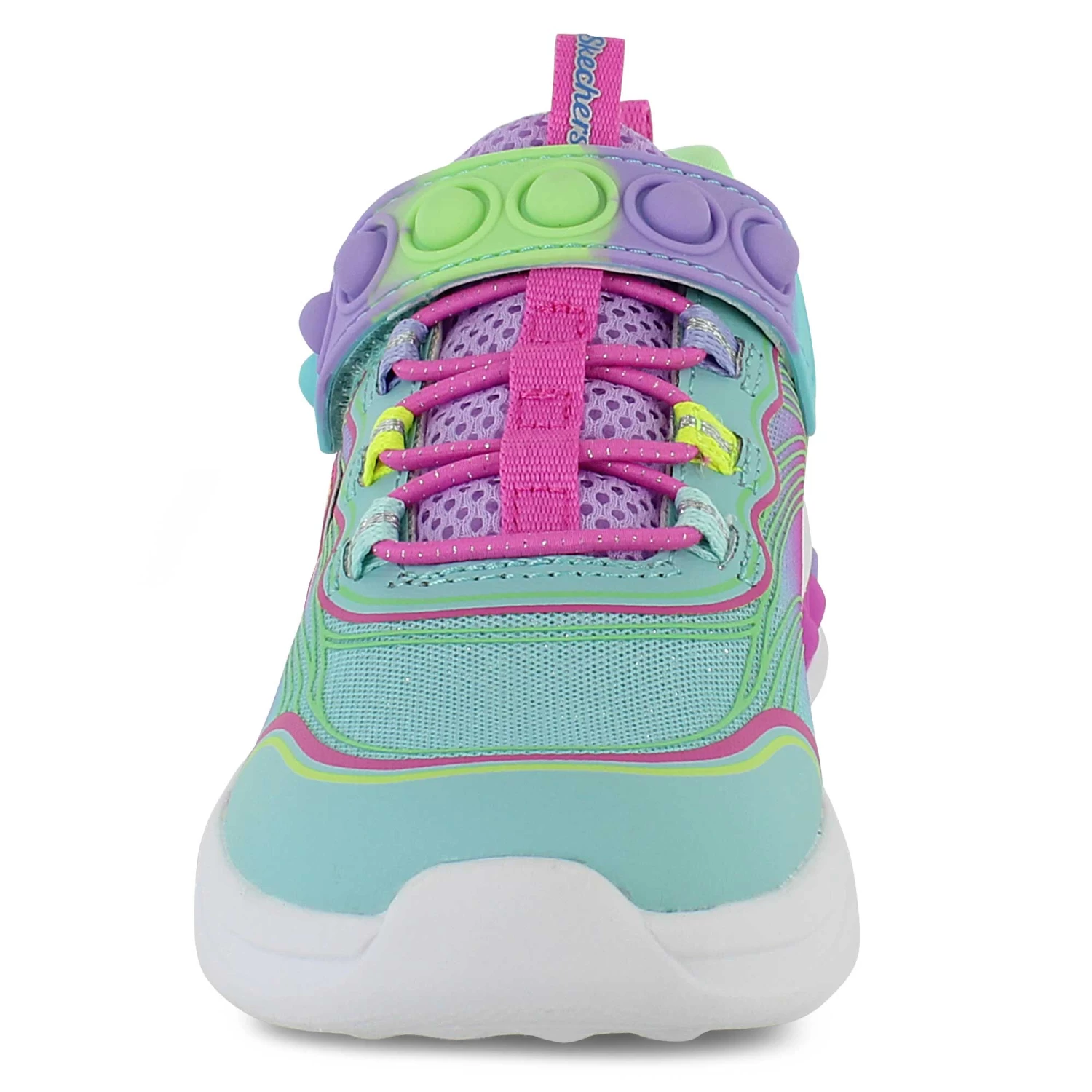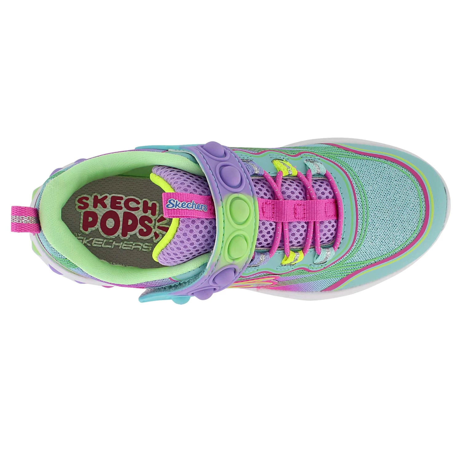 Give your look a pop of fun and color in these Skechers Pop Bubble-themed sneakers. Decorative sculpted bubble accents on the strap and midsole are sure to draw the eye, along with a sparkly fabric upper and bold designs. Elastic laces and strap closure make them easy to put on and take off so you’ll be ready to go in no time. Find them now at SHOE SHOW MEGA.