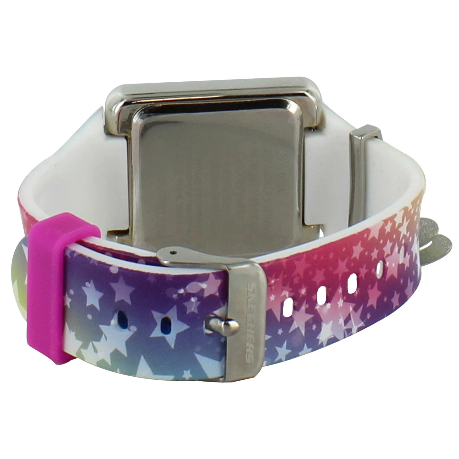 Always be on time with this awesome Skechers star-design watch. This awesome time piece has a colorful star-print band, faux-diamonds surrounding the face and a Skechers logo “S” charm attached to it. Be stylishly on time with this choice.