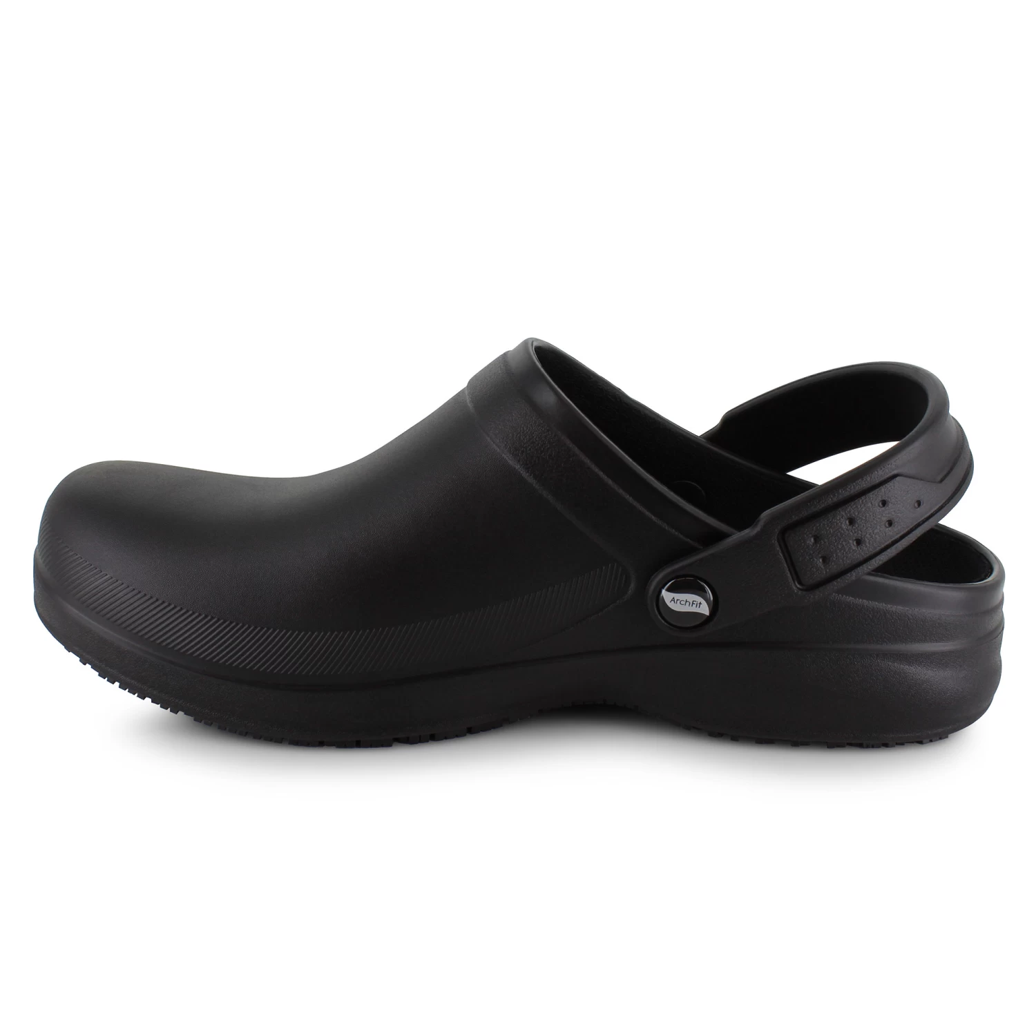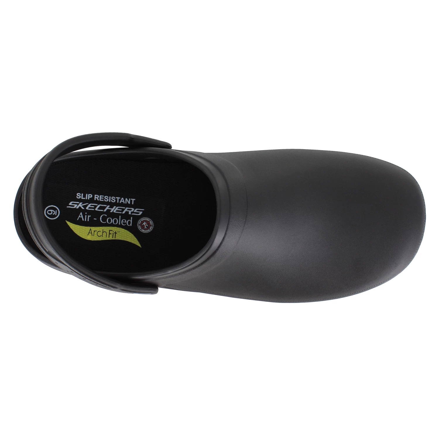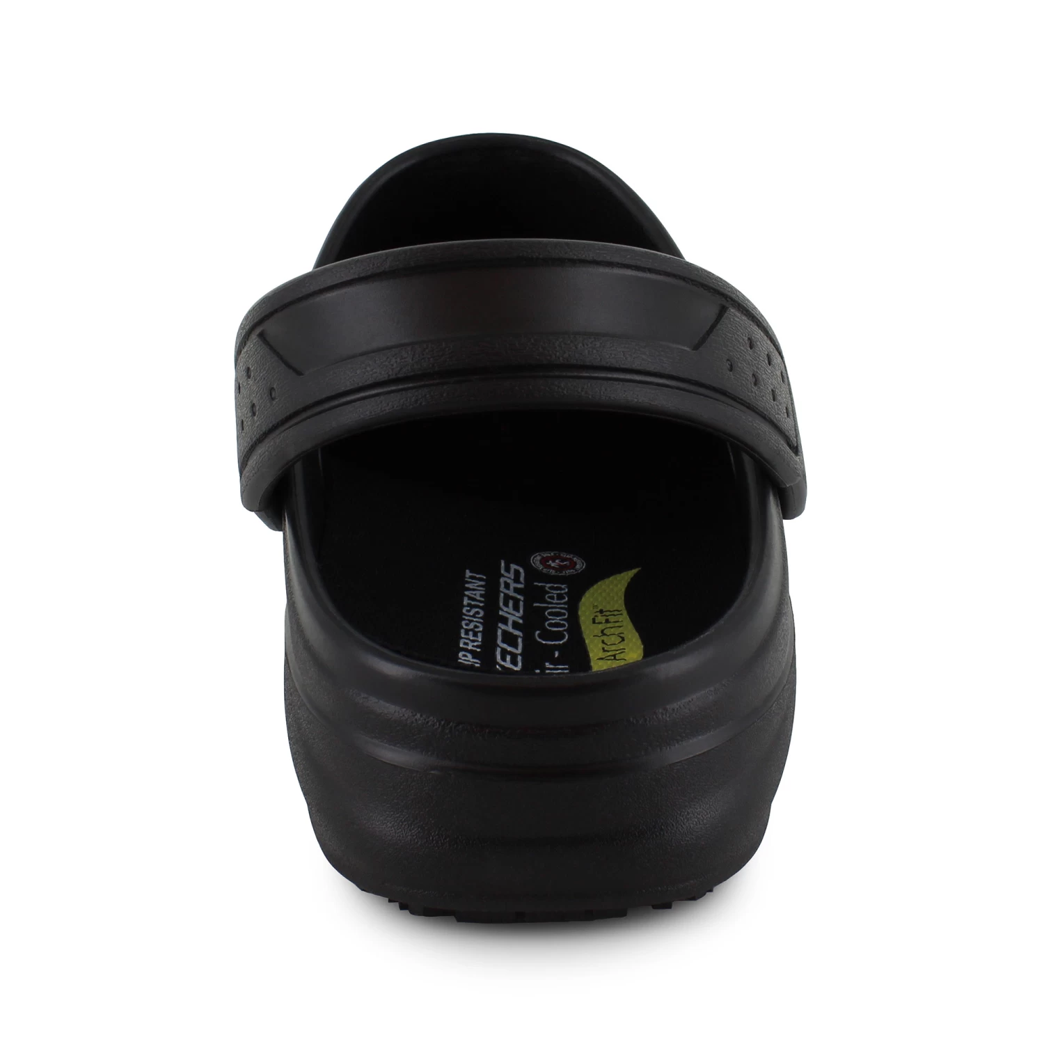 Take your workday in strides with the Skechers Work Arch Fit: Riverbound SR. The sculpted EVA construction provides lightweight comfort and support where you need it most with a slip-on clog that’s made for hard workers. The convertible heel strap secures your foot in place while an oil and slip-resistant outsole provides superior traction to keep you grounded throughout the day. Featuring Skechers’ Arch Fit system for podiatrist-certified arch support through a contoured comfort footbed that molds to your foot to reduce shock and disperse weight evenly throughout.