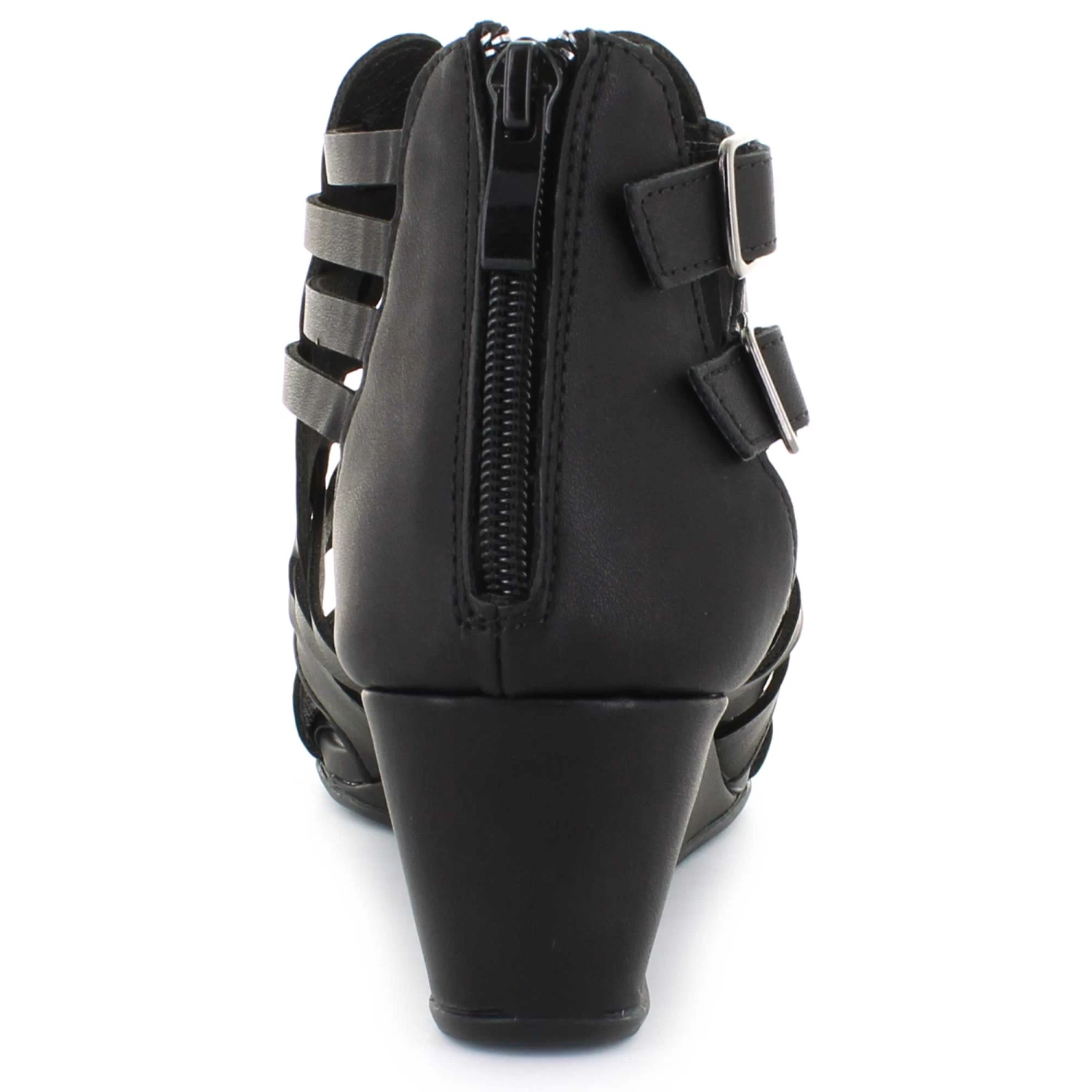 Cute and stylish strappy dress shoe by Sophia Taylor. The Sophia Taylor Juniper features dual side buckles with a back zipper closure. The wedge heel will provide the perfect height.