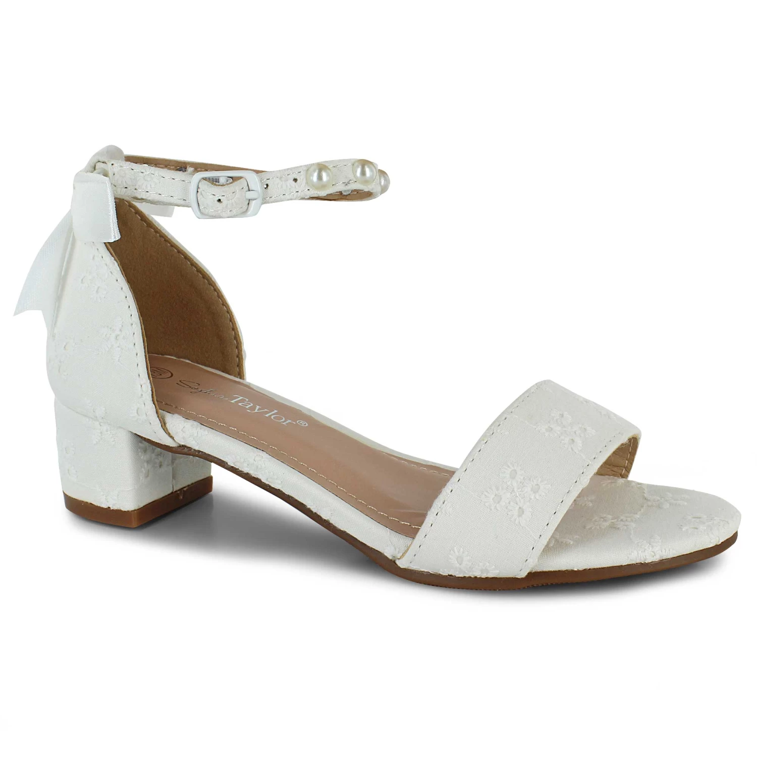 Perfect your formal look with these pretty Sophia Taylor dress shoes. Floral embroidery decorates a white fabric upper, accessorizing dresses and skirts. An adjustable strap closure keeps them secure throughout the day so you can stay focused on the big event.