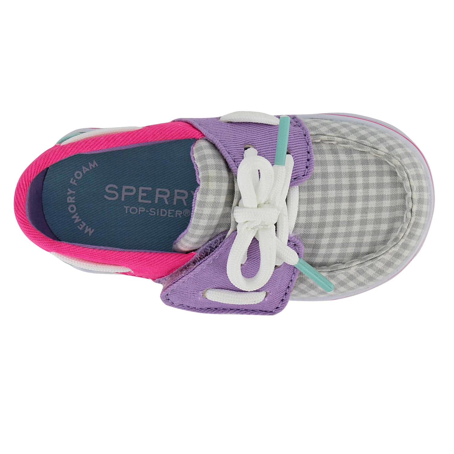 Brighten up the day with summertime favorites by Sperry. These cute boat shoes feature a hidden strap closure, so you don’t have to waste time on laces. The durable outsole means they can practice their walking in style.