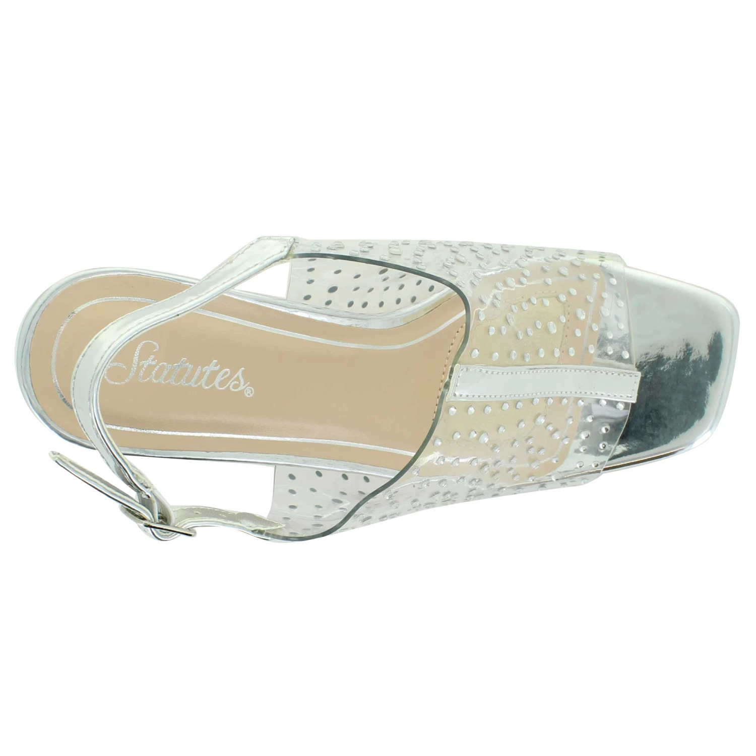 Dress up in stunning fashion with the Statutes Orleans. This style features a clear upper with sparkling rhinestones. The clear heel will add a touch of class to every step.